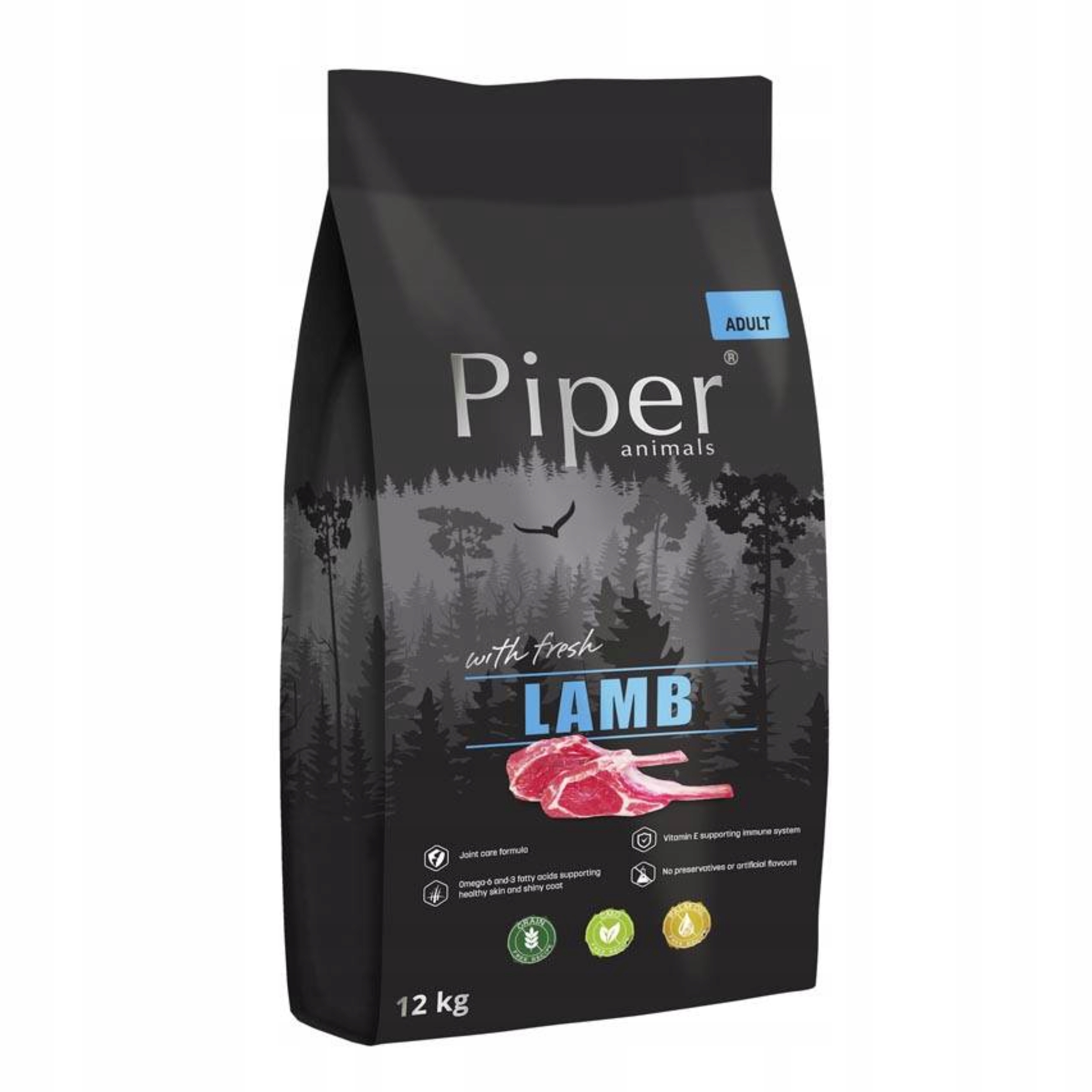 PIPER ANIMALS з ягням містить поживні речовини, необхідні для підтримки здоров'я та гарного стану дорослої собаки.