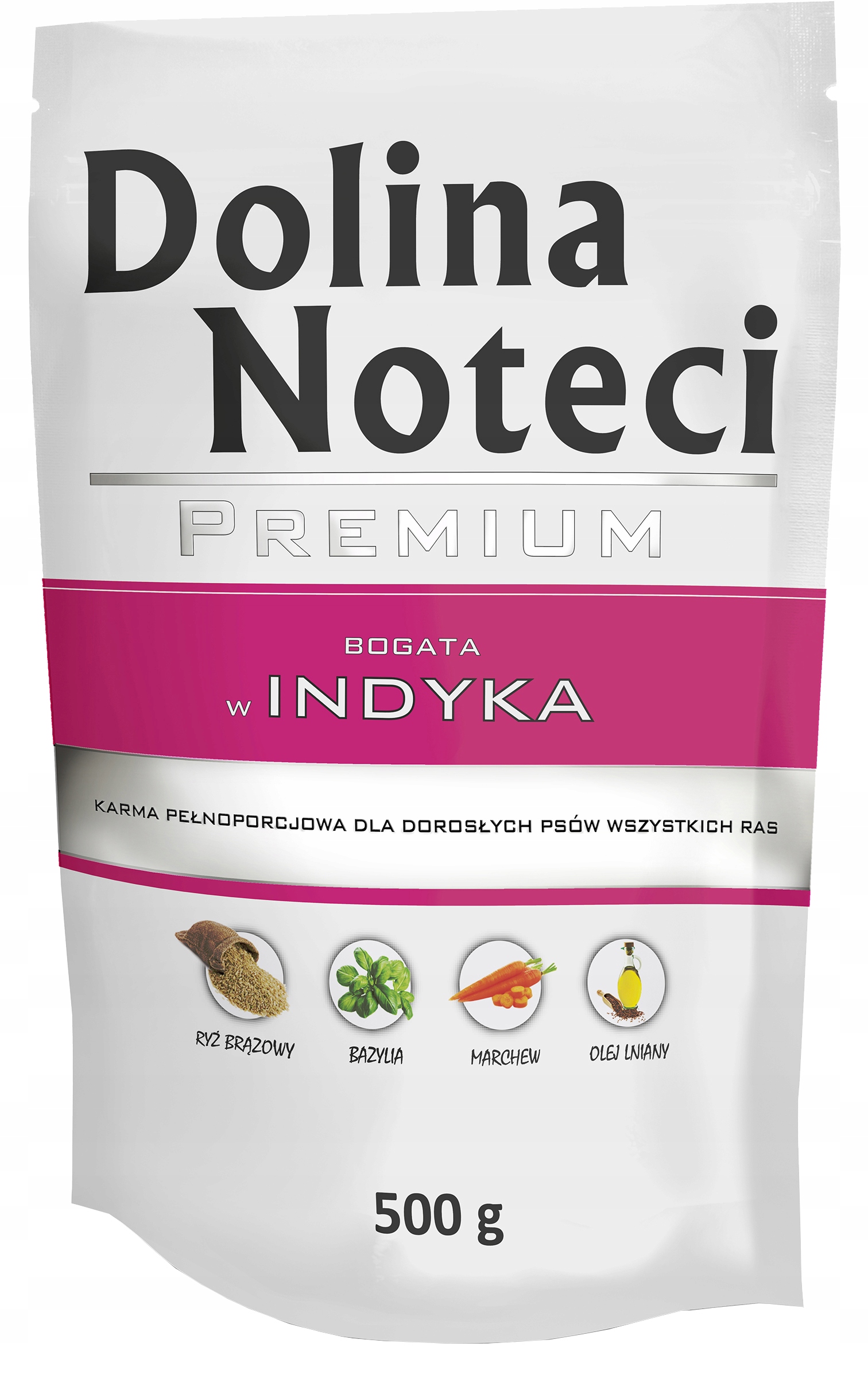 Вологий корм для собак Dolina Noteci Premium з багатим вмістом індички, 500 г пакетик
