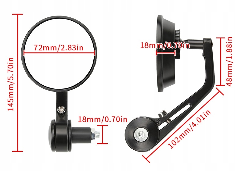 Сучасні алюмінієві круглі дзеркала мотоцикла зроблять кожні два -колеса виглядати додатковою установкою на кінчику діаметра 22 мм з 13 мм або 17 мм на місці, де встановлені ваги.