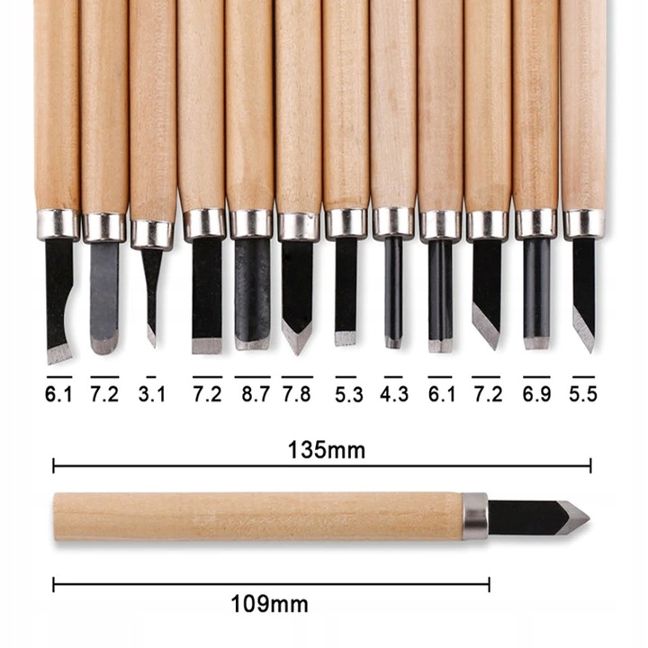 ⭐ Ідеальні інструменти також підходить для ліногравюри, ксилографії та гіпсу. Вони мають сталеве лезо з дерев’яною ручкою.