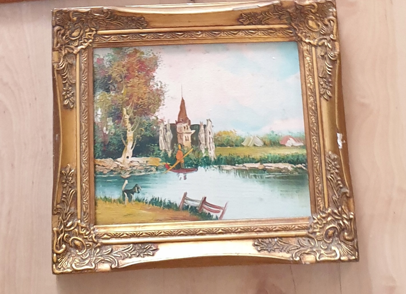DOM W LIKWIDACJI OBRAZ OLEJNY Z PRZEDSTAWIENIAMI KRAJOBRAZOWYMI