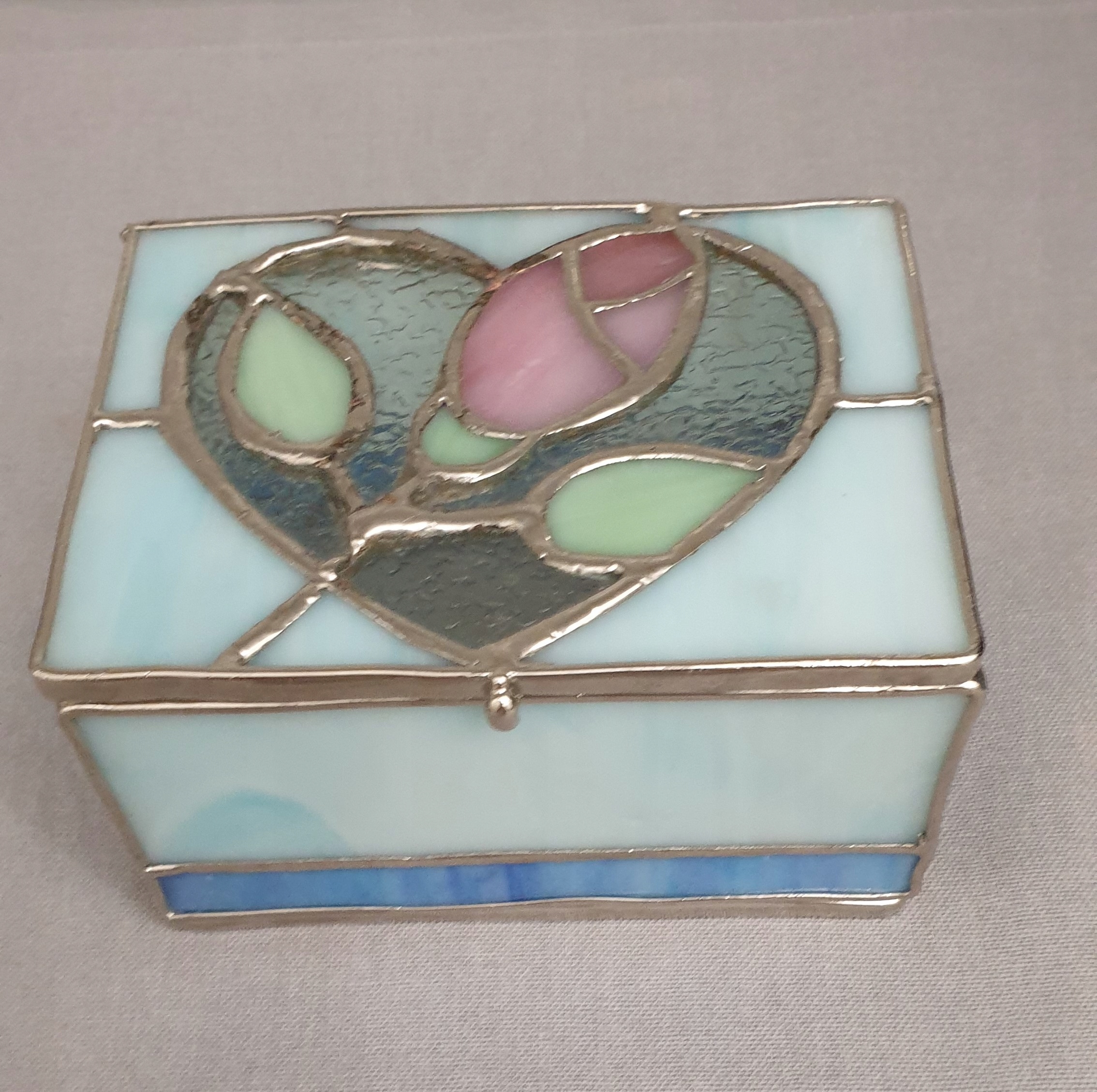 DOM W LIKWIDACJI SZKATUŁA ZE SZKŁA WITRAŻOWEGO Z OZDOBNYM MOTYWEM