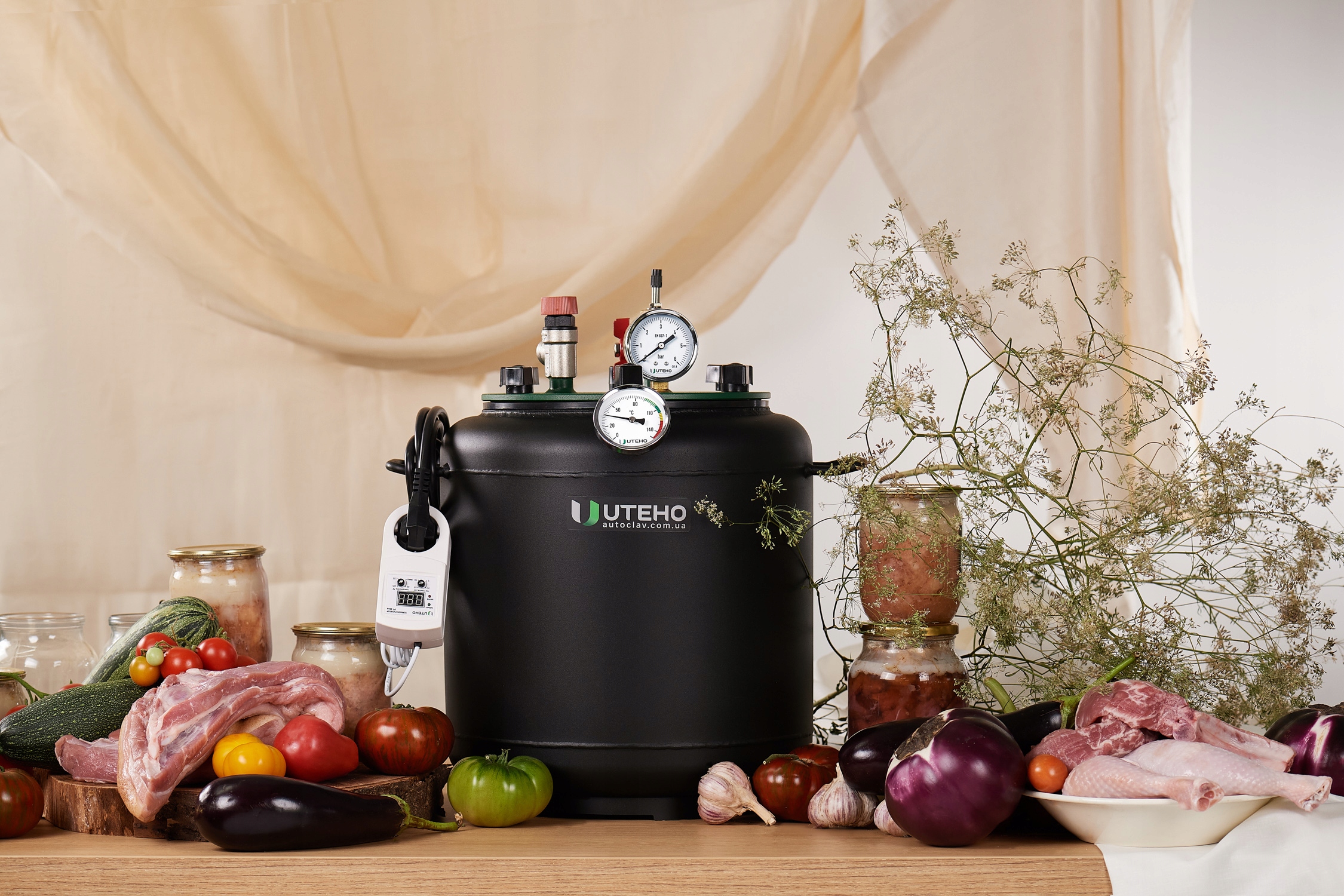 Домашній автоклав "UTech-8 electro (Universal)" - це сучасний пристрій з чорного металу для стерилізації та приготування консервації. Обігрівається від мережі і зовнішнього джерела тепла, що робить прилад універсальним. Автоклав ідеально підходить для домашнього використання. У комплект автоклава входить блок управління, який забезпечує приготування консервації в автоматичному режимі за обраним часом і температурою. Автоклав оснащений аварійним клапаном, що робить процес приготування консервації безпечним.