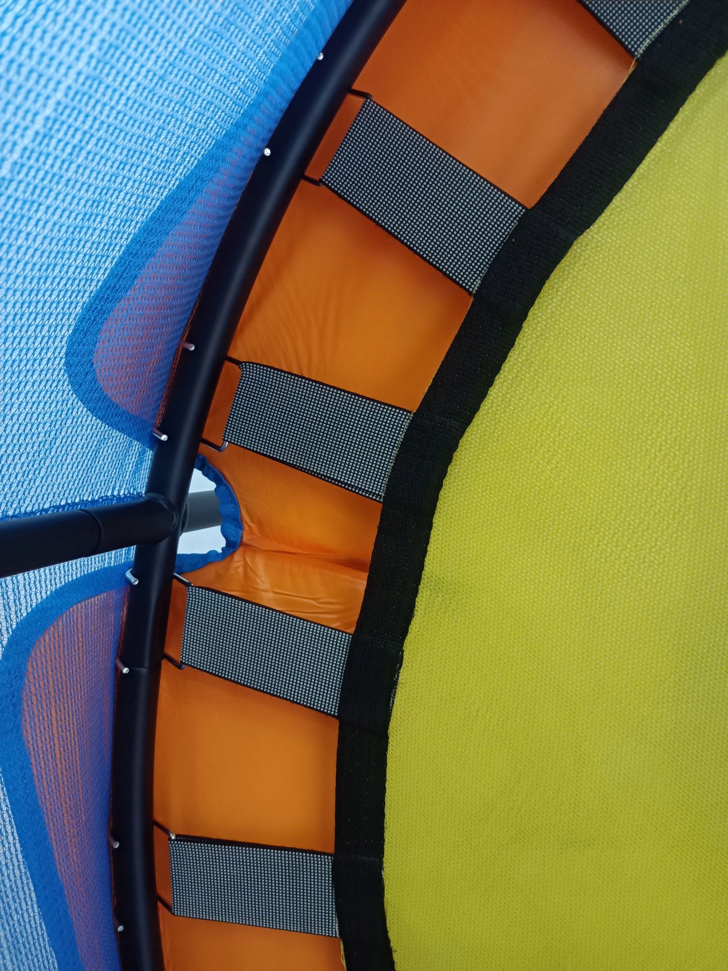 1. У килимку для батута замість пружин використовуються еластичні гуми. Це захищає вашу дитину від травм і ударів, видаляючи всі тверді місця, створюючи безпечне ігрове середовище. Еластичні стрічки забезпечують гнучкий і безпечний відскік.
