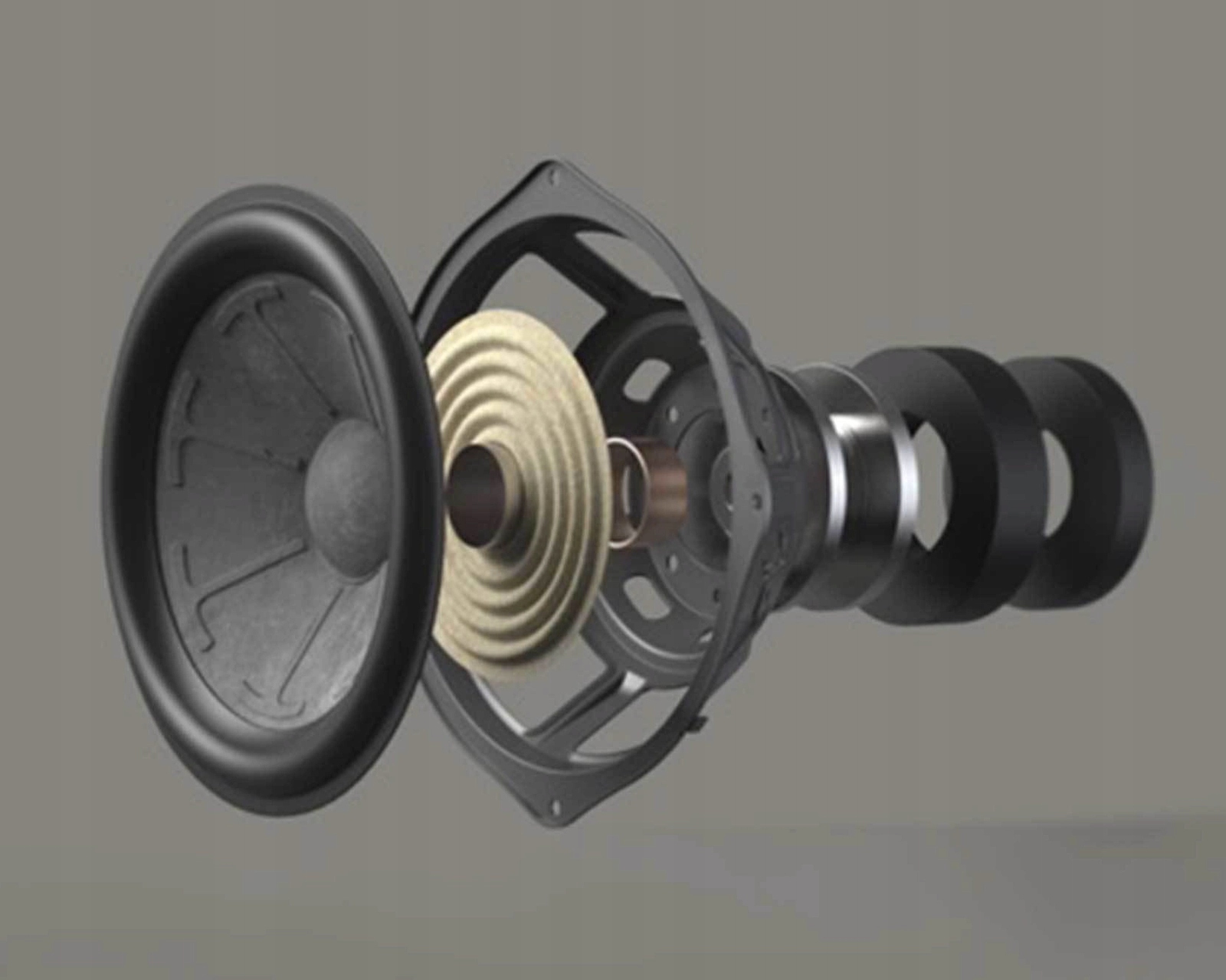 Вуфери мають тиснені паперові конуси, а потужні неодимові магніти використовують алюмінієві замикаючі кільця для збільшення потужності та зменшення спотворень. Алюмінієве замикаюче кільце зменшує спотворення для чистого, динамічного басу та дозволяє збільшити потужність, діючи як радіатор. Рельєфна паперова діафрагма з принтом «Молот Тора» збільшує жорсткість, щоб покращити провідність живих і природних басів.