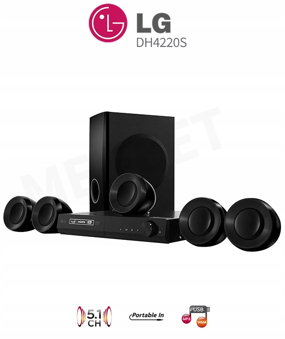 Мультимедійний домашній кінотеатр із динаміками в системі 5.1. Модель DH4220S — це повністю обладнаний мультимедійний домашній кінотеатр. Він пропонує високу якість аудіо/відео з 5.1-канальною акустичною системою. Абсолютно новий пульт дистанційного керування та екранне меню роблять цю систему надзвичайно простою у використанні. Мультимедійні функції набору також дозволять вам, окрім відтворення DVD-дисків, слухати музику чи переглядати фотографії безпосередньо з порту USB, а функція прямого запису дозволяє записувати звук із FM-тюнера.