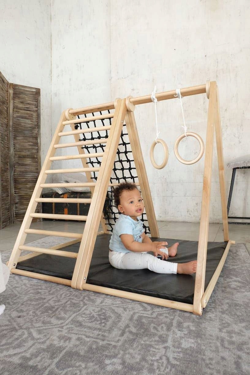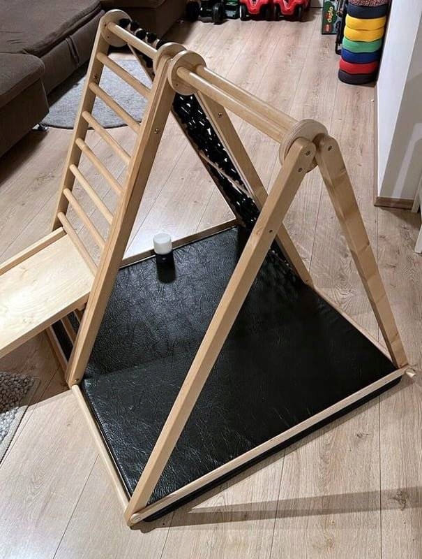 Ось набір, розроблений для діяльності та радості дітей у віці від 1,5 до 11. Він складається з декількох елементів, які сприяють гри, фізичних вправ та розвитку придатності. Перший елемент - це дерев’яна піраміда, оснащена драбиною та струнною сіткою. Це творчий дизайн, який спонукає дітей до підйому, вдосконалюючи моторну координацію та розвиваючи рухові навички. Другий важливий елемент - це гімнастичний матрац, який є не лише додатковим комфортом, але і перш за все захистом під час фізичних вправ. Матрац забезпечує безпечні умови під час діяльності, подушки можливі падіння та захист від травм. Крім того, набір може містити різні гімнастичні аксесуари, адаптовані до вибраного набору. Варто зазначити, що цей набір призначений для дітей від 1,5 до 11 років, а максимальне навантаження залежить від елементів: 90 кг для ігрового майданчика та 40 кг для аксесуарів.