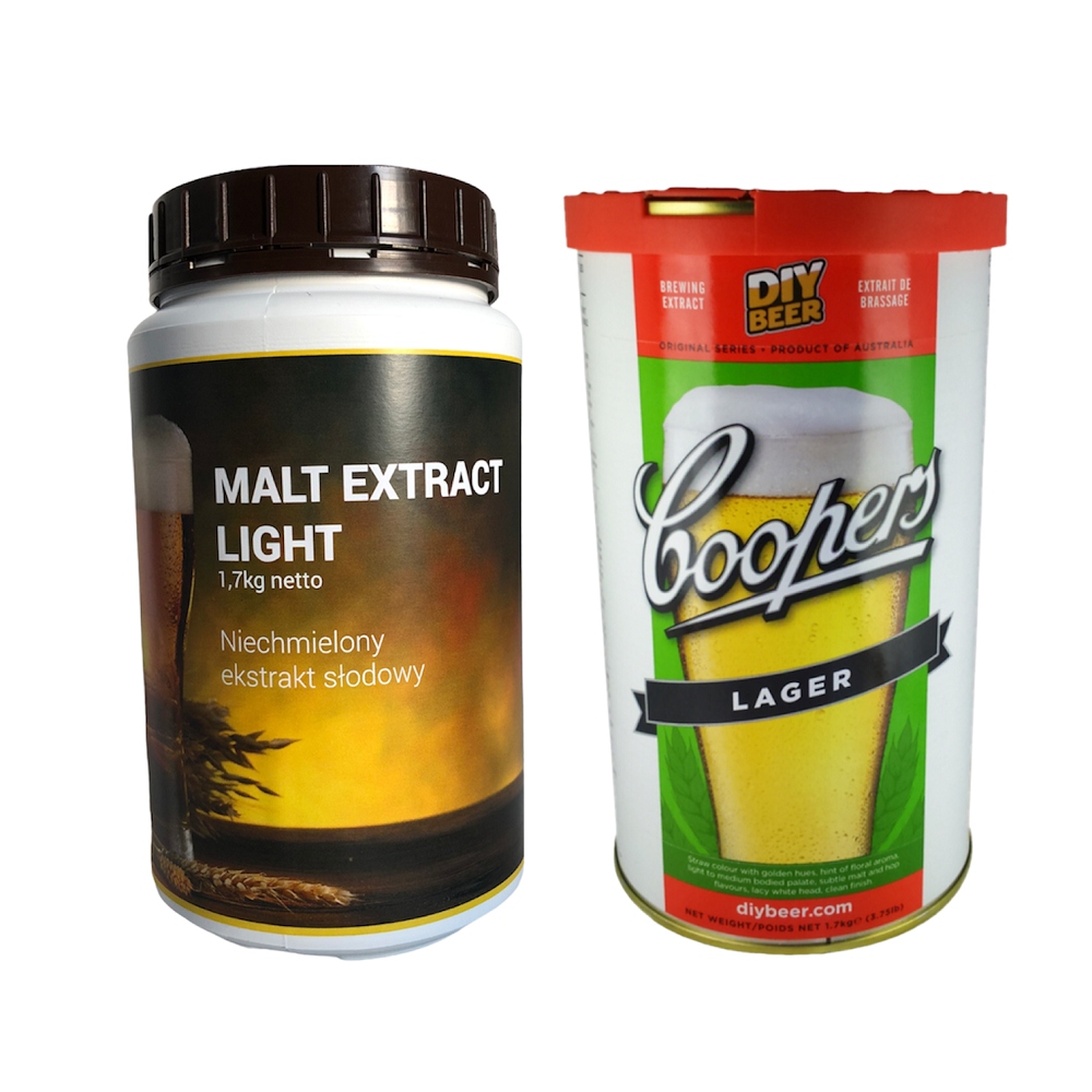 Готовий набір для варіння пива. Просто виберіть свій улюблений смак пива, наприклад охмелений екстракт (brewkit), додайте неохмелений екстракт і починайте свою пригоду з домашнього пивоваріння.