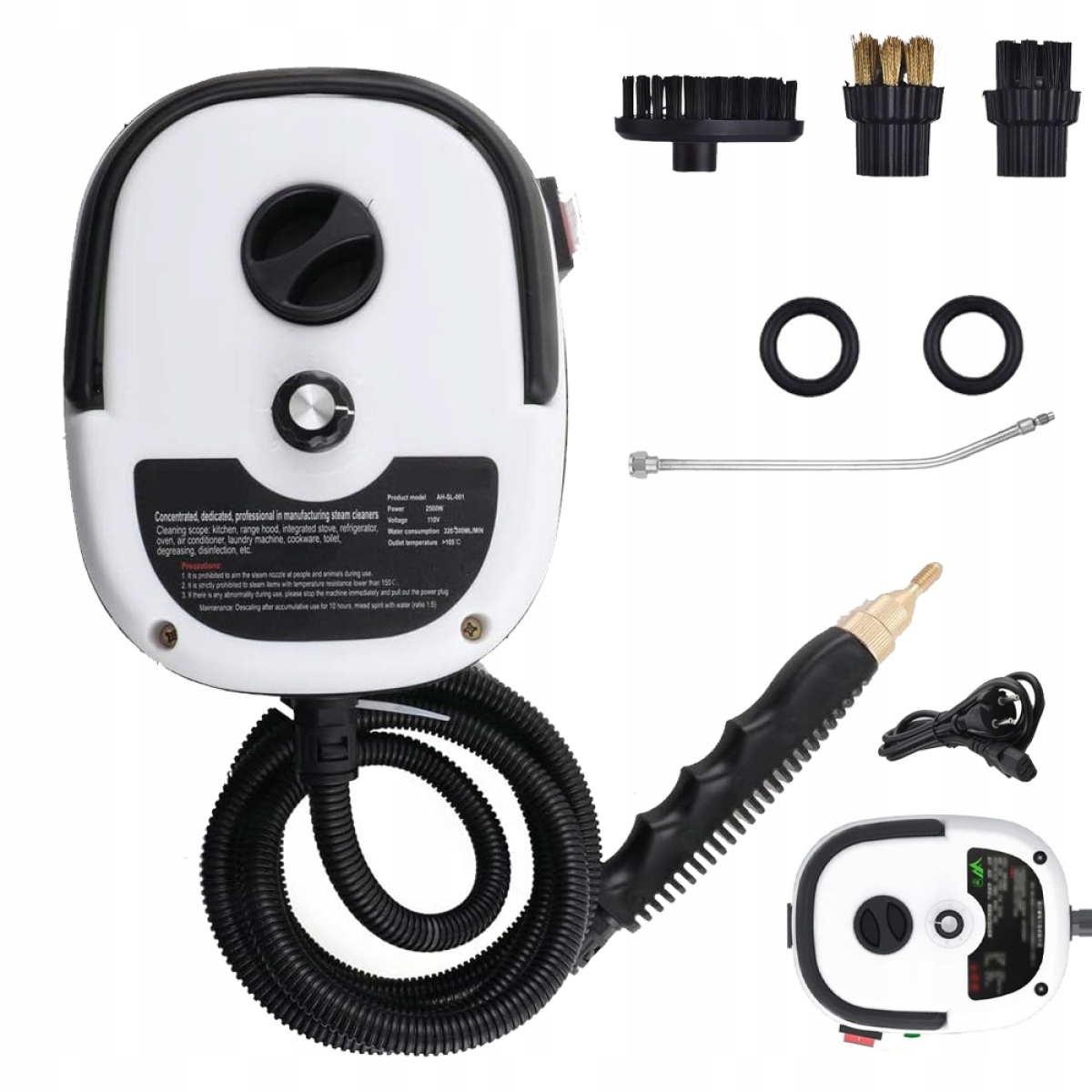 - Висока потужність 2500 Вт може генерувати пару високою температурою 229°F/105°C і тиском 3 бари за 10 секунд, ефективно видаляючи стійкі, жирні забруднення та плями.