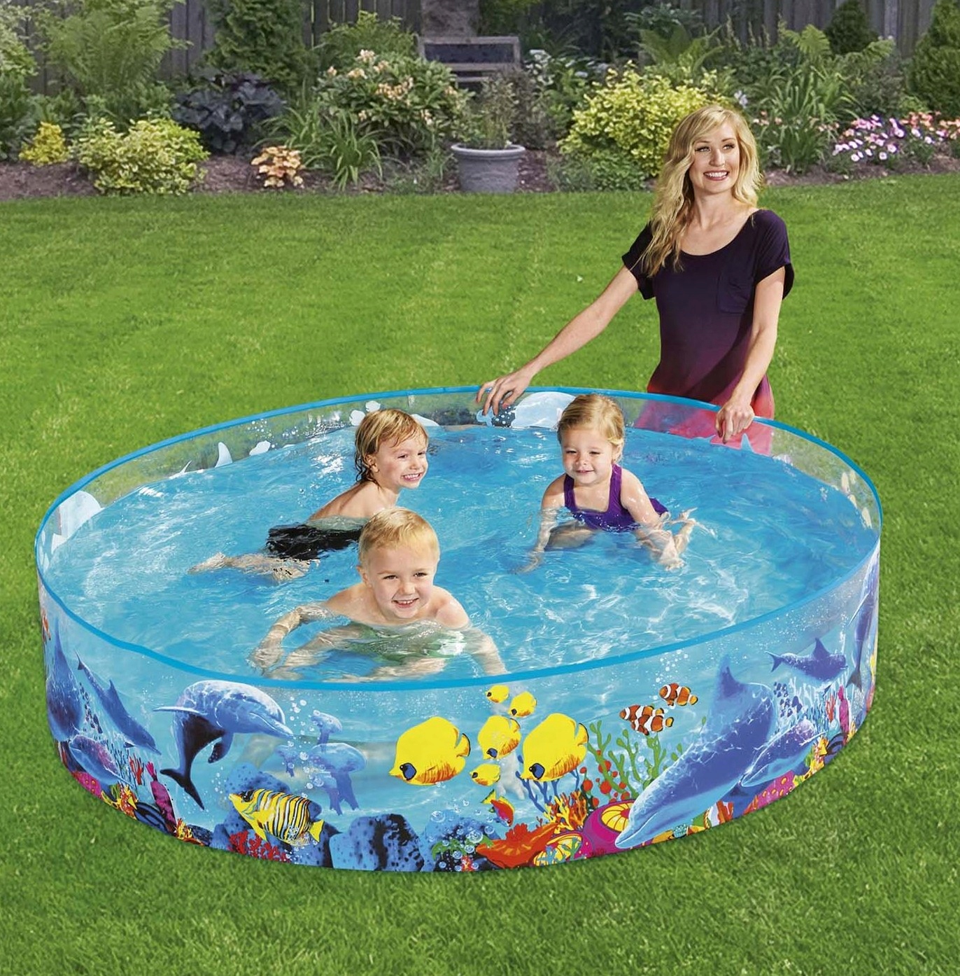 Міцні та жорсткі стінки з ПВХ, посилені суцільним вініловим дном, забезпечують стабільність та довговічність під час інтенсивних ігор дітей. Басейн об’ємом 2074 літри дає достатньо місця для малюків, щоб вільно насолоджуватися плаванням.