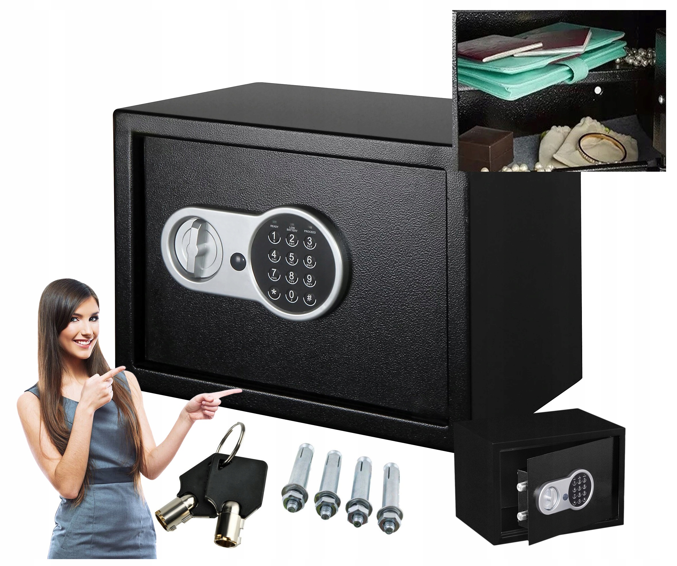 ДОМАШНІЙ СЕЙФ З ЕЛЕКТРОННИМ ЗАМКОМ ПОЛИЦЯ БРОНЬОВАНА КАСА ЧОРНИЙ + АНКЕРИ