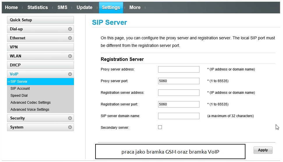 CS Voice - пристрій веде себе як GSM-шлюз, який одночасно роздає Інтернет. Після підключення стаціонарного телефону ви можете дзвонити та приймати дзвінки з нього - все через SIM-карту, вставлену в роутер. Під час розмови Інтернет перемикається на діапазон 3G, а після розмови знову перемикається на LTE.