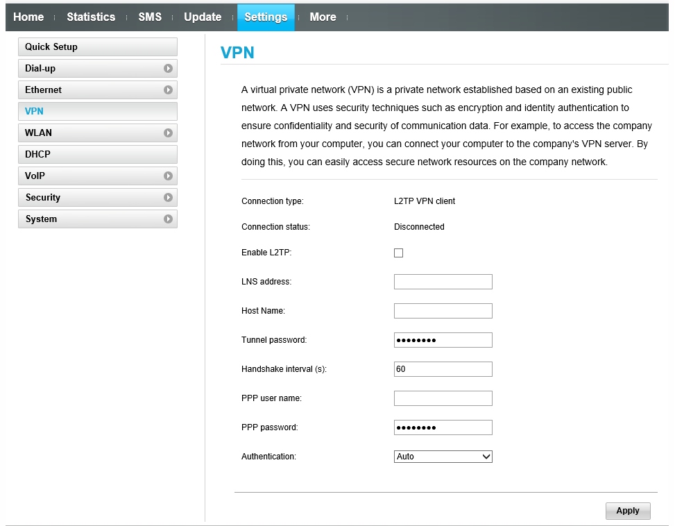 Досвідчених користувачів зацікавить можливість встановлення підключення VPN L2TP та співпраця з програмою LTE Watch Huawei.