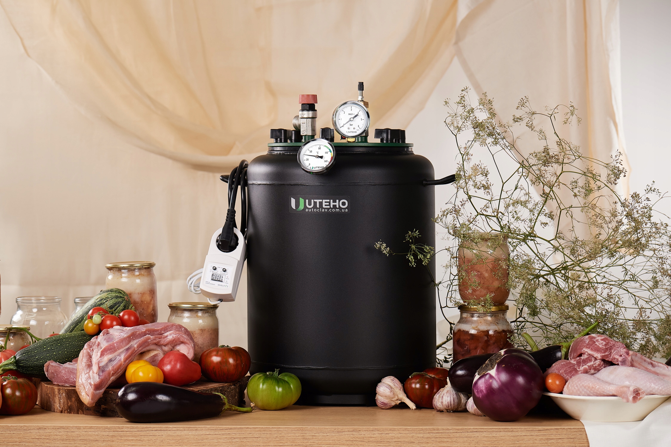 Електро-атоклав "Utech-16 (Universal)"-це сучасний пристрій, виготовлений з чорного металу для стерилізації та приготування консервів. Він нагрівається мережею та зовнішнім джерелом тепла, що робить пристрій універсальним. Автоклав ідеально підходить для домашнього використання. Набір автоклавів включає в себе блок управління, який забезпечує підготовку консервів в автоматичному режимі відповідно до вибраного часу та температури. Автоклав оснащений аварійним клапаном, що робить процес підготовки консервів безпечним.