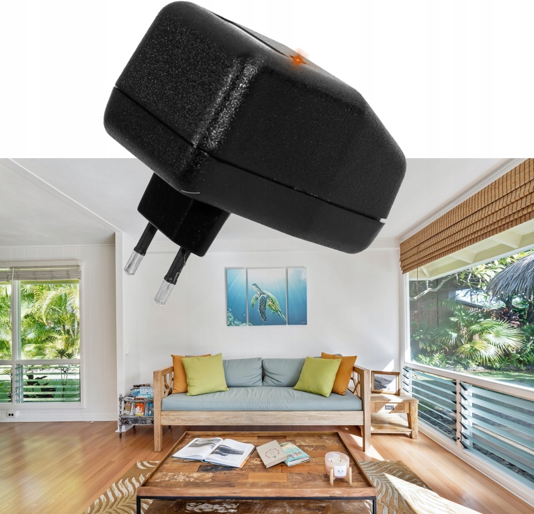 Пристрій підключається до звичайної розетки. Червоний світлодіод вказує на те, що він працює належним чином. Ультразвукові хвилі випромінюються в пакеті на частотах від найвищої до найнижчої з перервою в кілька секунд між пакетами.