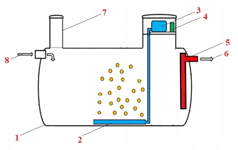 Комплексна очисна станція страждань складається з типових резервуарів PEHD з ємністю 2, 3 або 4 м3. Залежно від навантаження/кількості людей від 1 до 8 RLM, використовується відповідний резервуар.