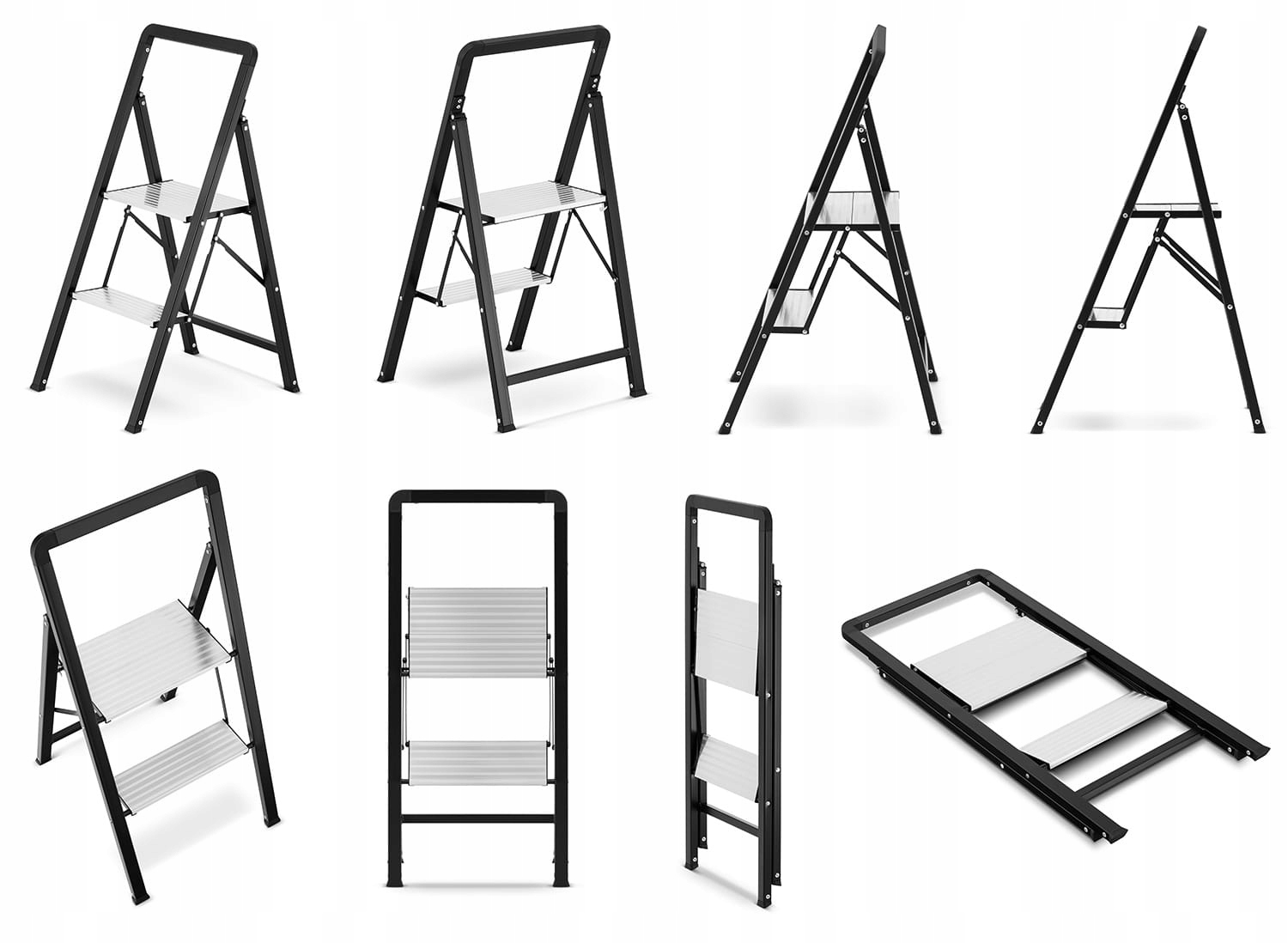 Завдяки складовій структурі драбина надзвичайно компактна - після складання її лише 4,5 см, що полегшує зберігання навіть у тісних місцях, таких як шафи або ніші. З вагою 3,8 кг його передача надзвичайно проста, а верхня ступінь на висоті 45 см дозволяє зручно виконувати щоденні обов'язки, такі як замовлення, прикраса або досягнення більш високих полиць.