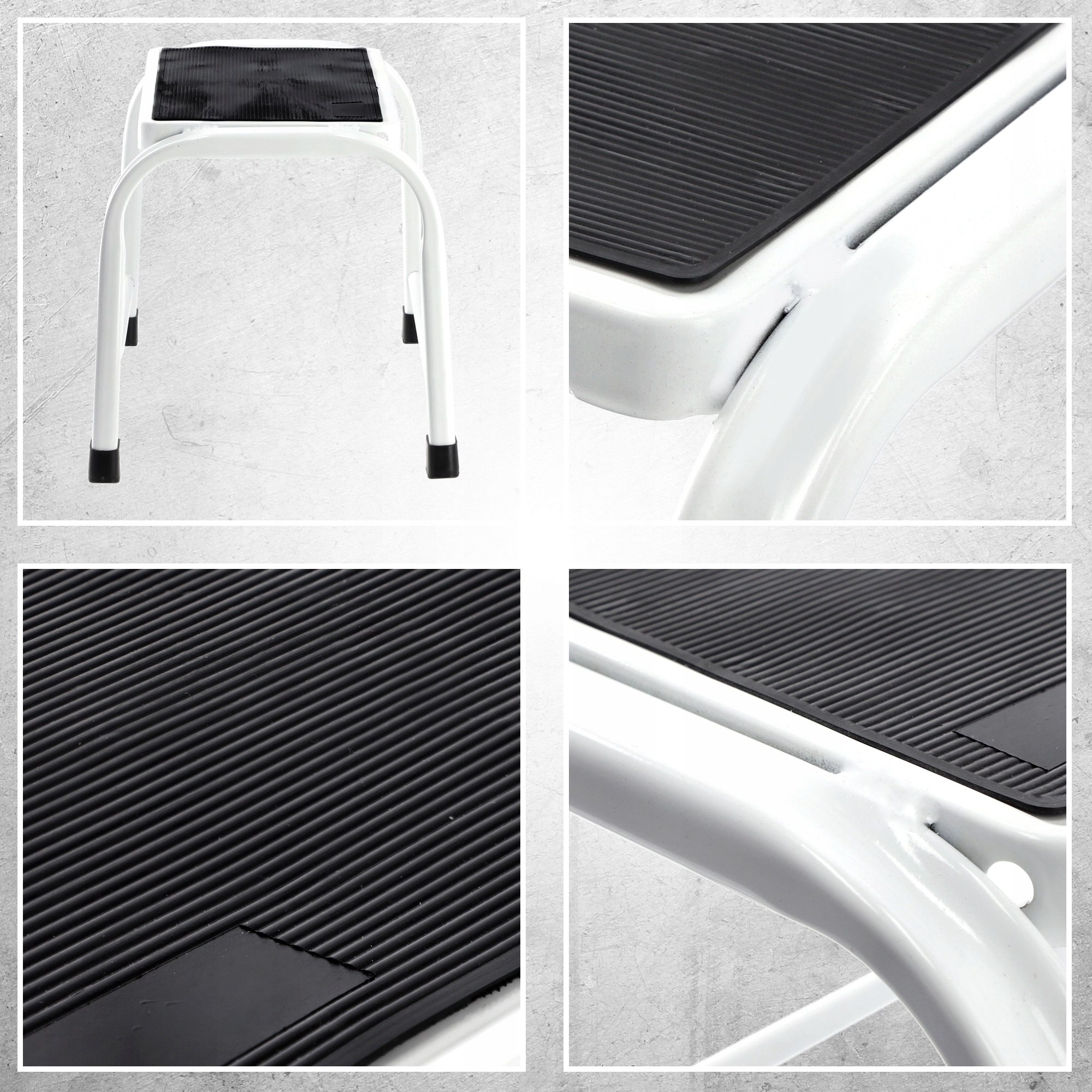 ✅ДВІ МОДЕЛІ - доступна платформа доступна в двох версіях. Тому ви можете вибрати табурет з одним або двом сходами. Останнє стане в нагоді, коли вам потрібно дотягнутися трохи вище, наприклад, до полиці з інструментами.