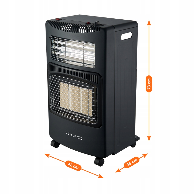 Електрична газова плита Velaco - це практичне та функціональне рішення, яке ідеально підходить для обігріву житлових, офісних або підсобних приміщень. Виготовлена з міцних матеріалів, що поєднує міцний сталевий корпус з ефективною системою опалення, піч характеризується високою стійкістю до щоденного використання та простотою використання. Його інноваційна гібридна конструкція дозволяє використовувати як газ, так і електроенергію, що підвищує його універсальність і комфорт використання. Завдяки вбудованим коліщаткам плита надзвичайно мобільна і легко пересувається. Це ідеальне рішення для людей, які цінують гнучкість, безпеку та надійне джерело тепла в холодні дні.