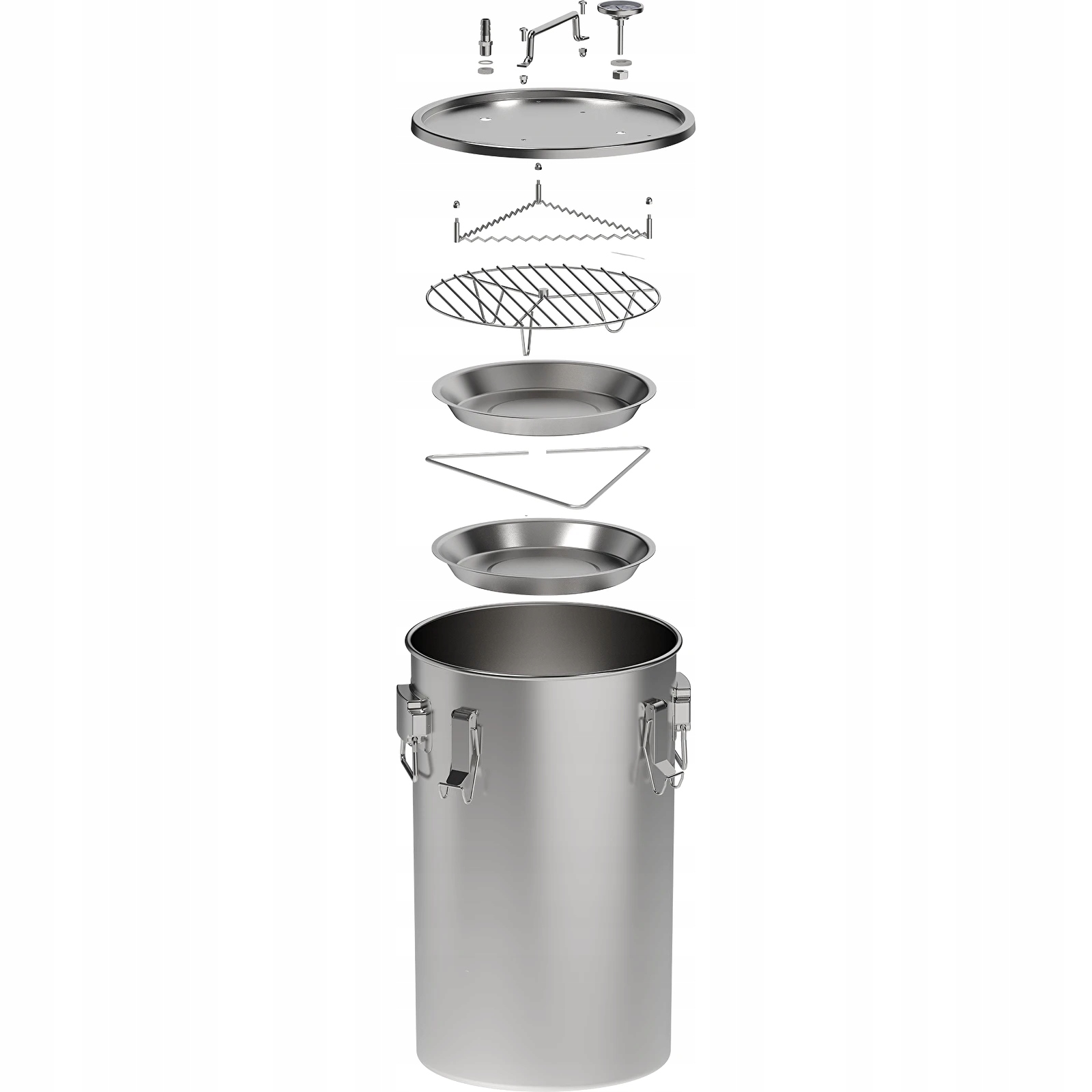 Елементи складання розташовані всередині горщика. Самостійно встановіть тримач кришки, вішалку, термометр, патрубок і шланг димовидалення.