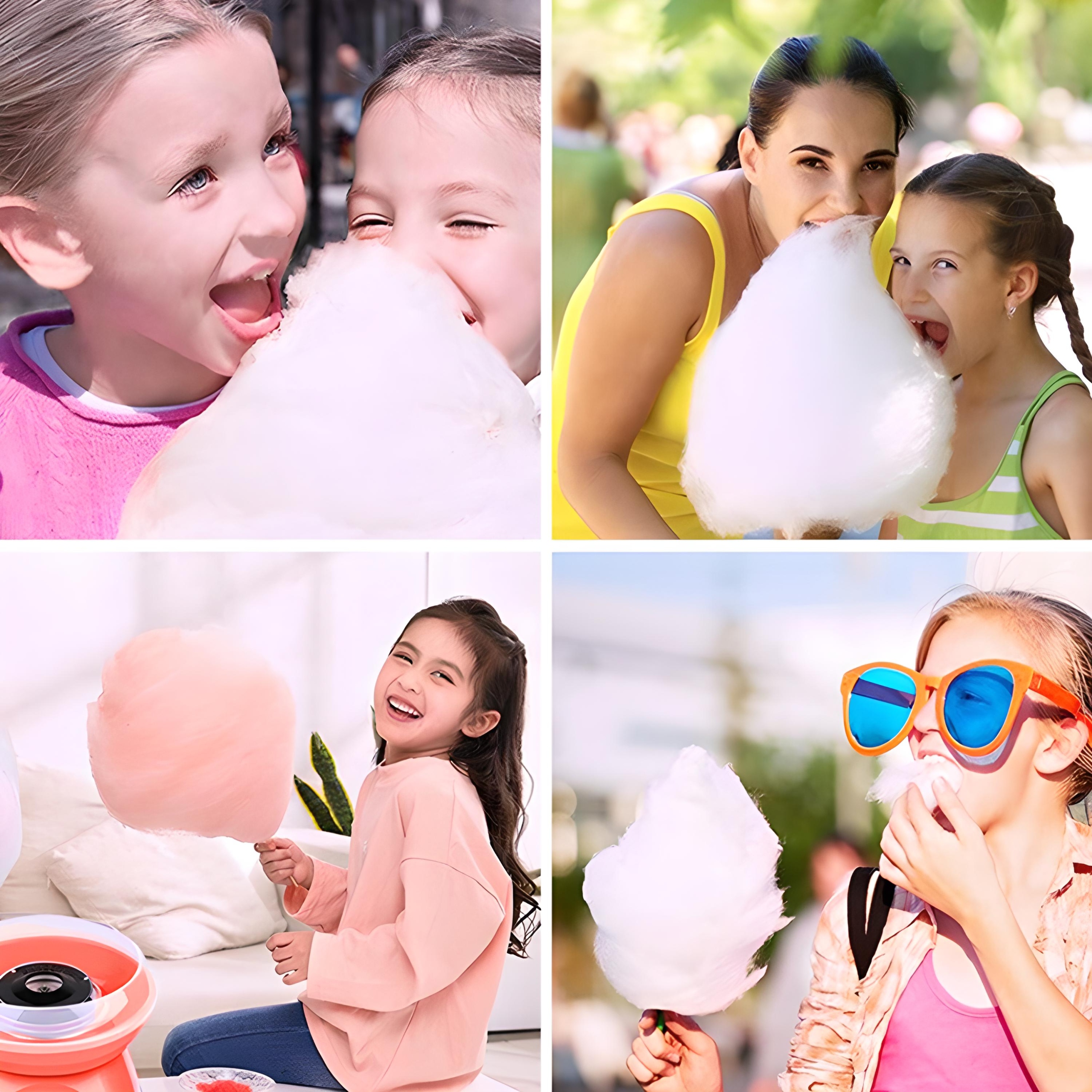 Цукрова вата для щоденного використання? Це можливо! Компактна машина для приготування цукрової вати ідеально підходить для домашнього використання та для дітей. Він урізноманітнює моменти, проведені в колі сім'ї, ідеально підійде для святкування днів народжень, заходів на свіжому повітрі тощо. Пристрій - ідеальна ідея для подарунка! Завдяки високій ефективності, продукт також пройде випробування в комерційних і робочих цілях.