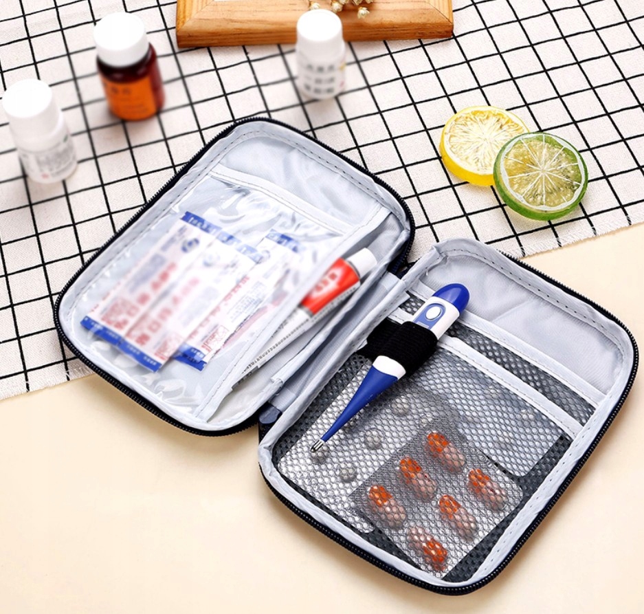 Домашня медична дорожня аптечка, місткий набір, синій, ліки 3 шт