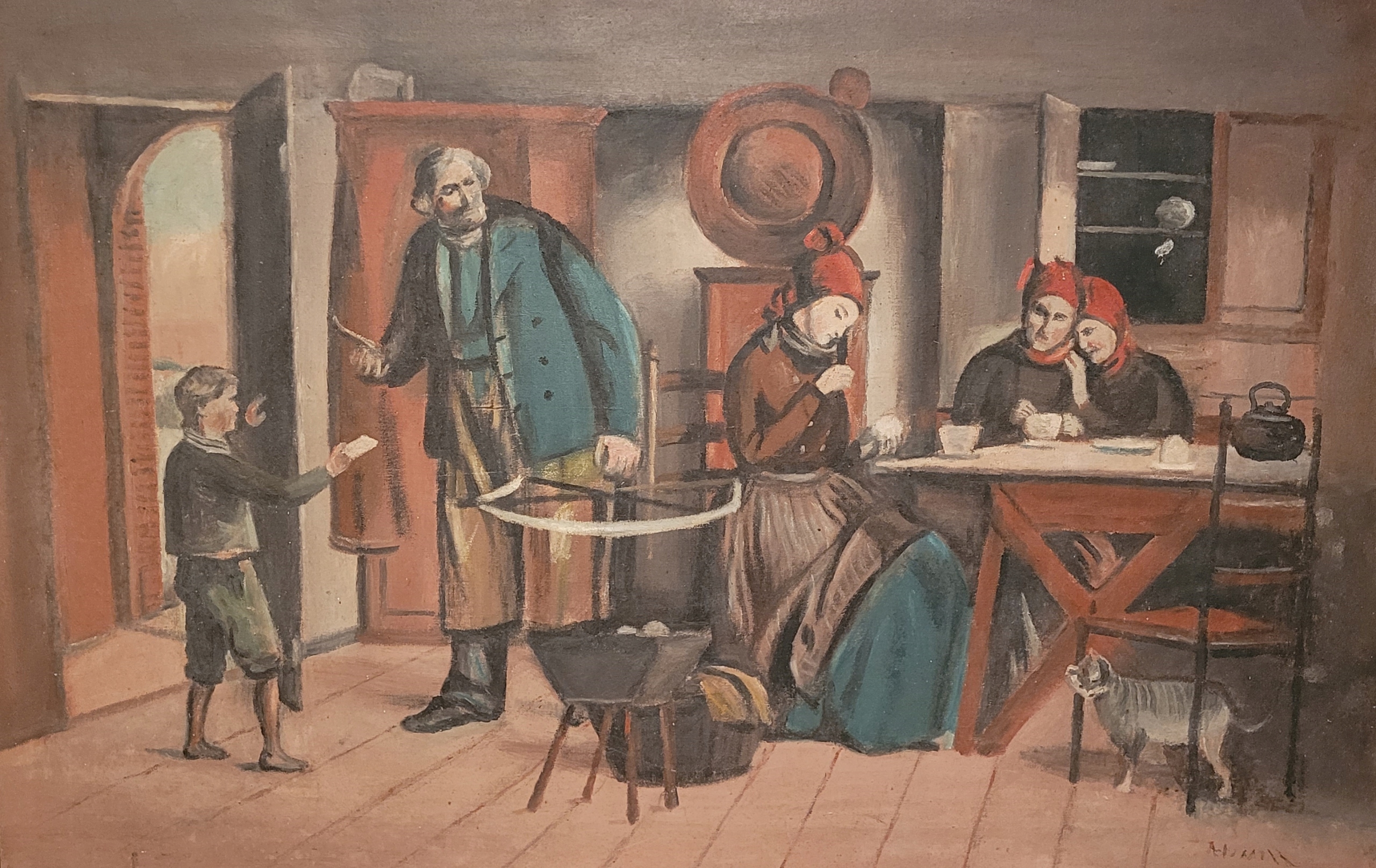 Тема продажу - це прекрасна, стара картина нафти "Домашня сцена".