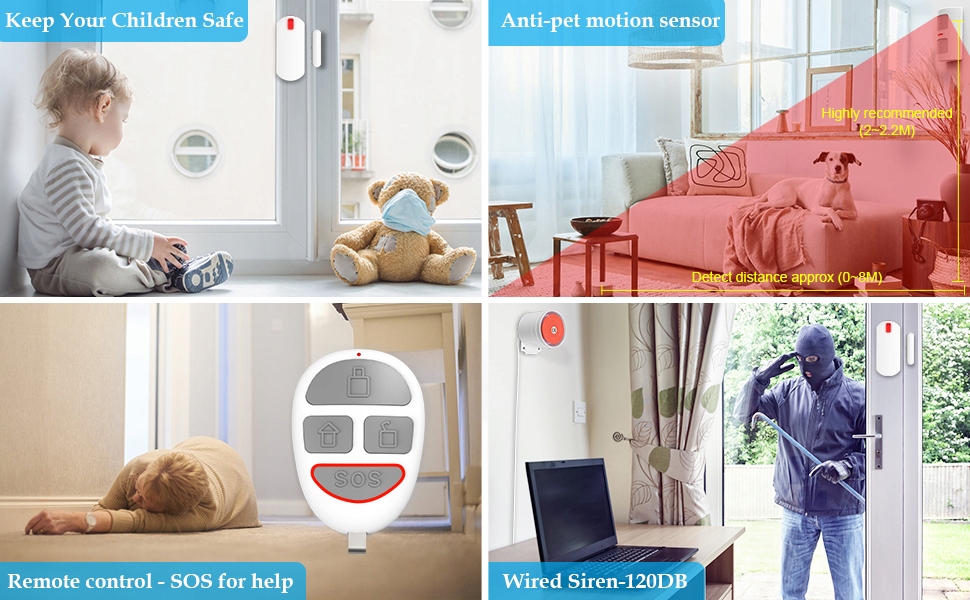 Бездротова система сигналізації з додатком (2,4 ГГц і 5 ГГц WLAN), бездротовий комплект із 16 предметів: Сигналізація хаб, датчики дверей, захист від домашніх тварин, дистанційне керування, робота з інтелектуальним помічником Alexa