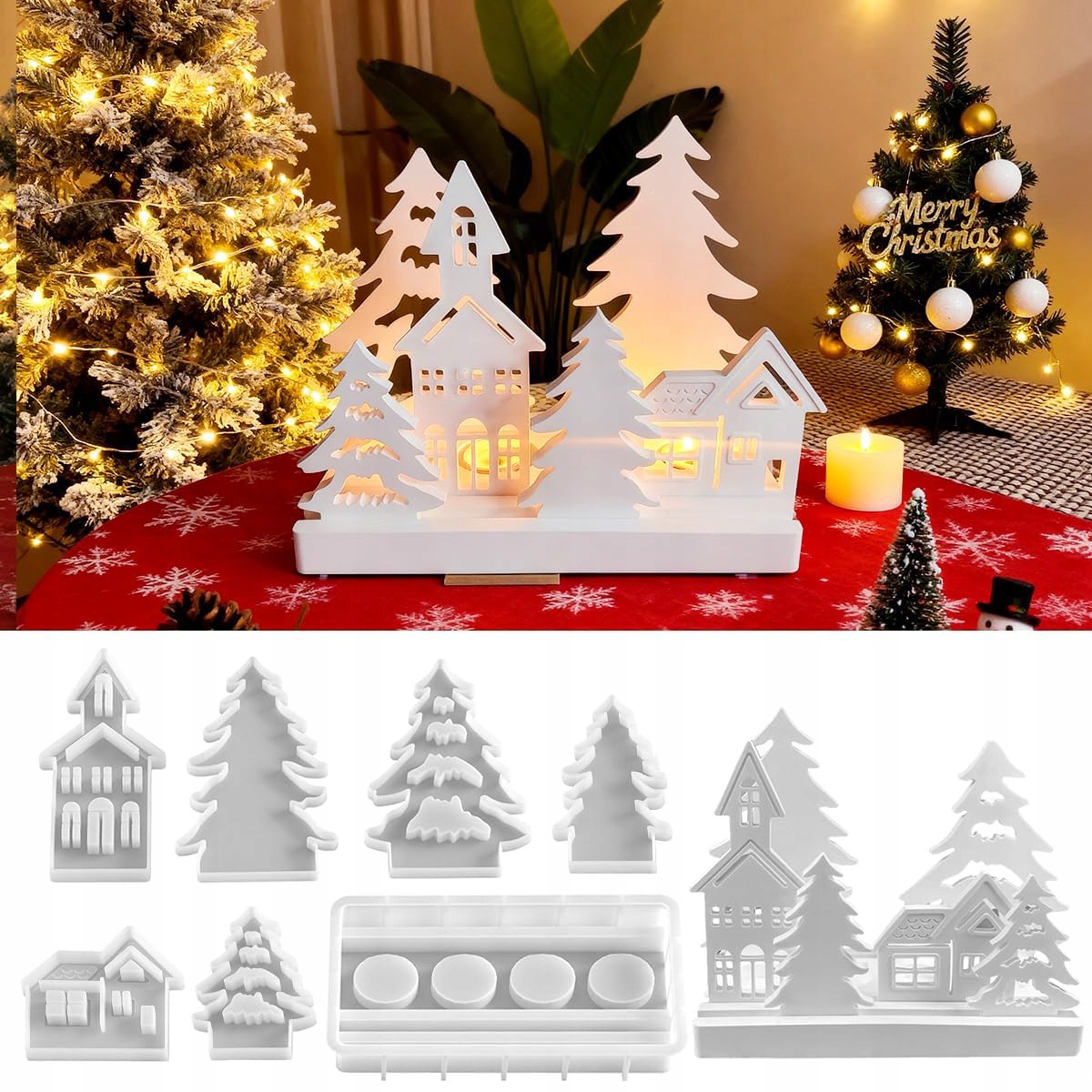 ✅Силіконові форми для будиночків, силіконова форма для будиночків із 7 частин із основою, силіконова форма для лиття, форма для гіпсового свічника, форма для лиття дерев, силіконова пружина для рукоділля