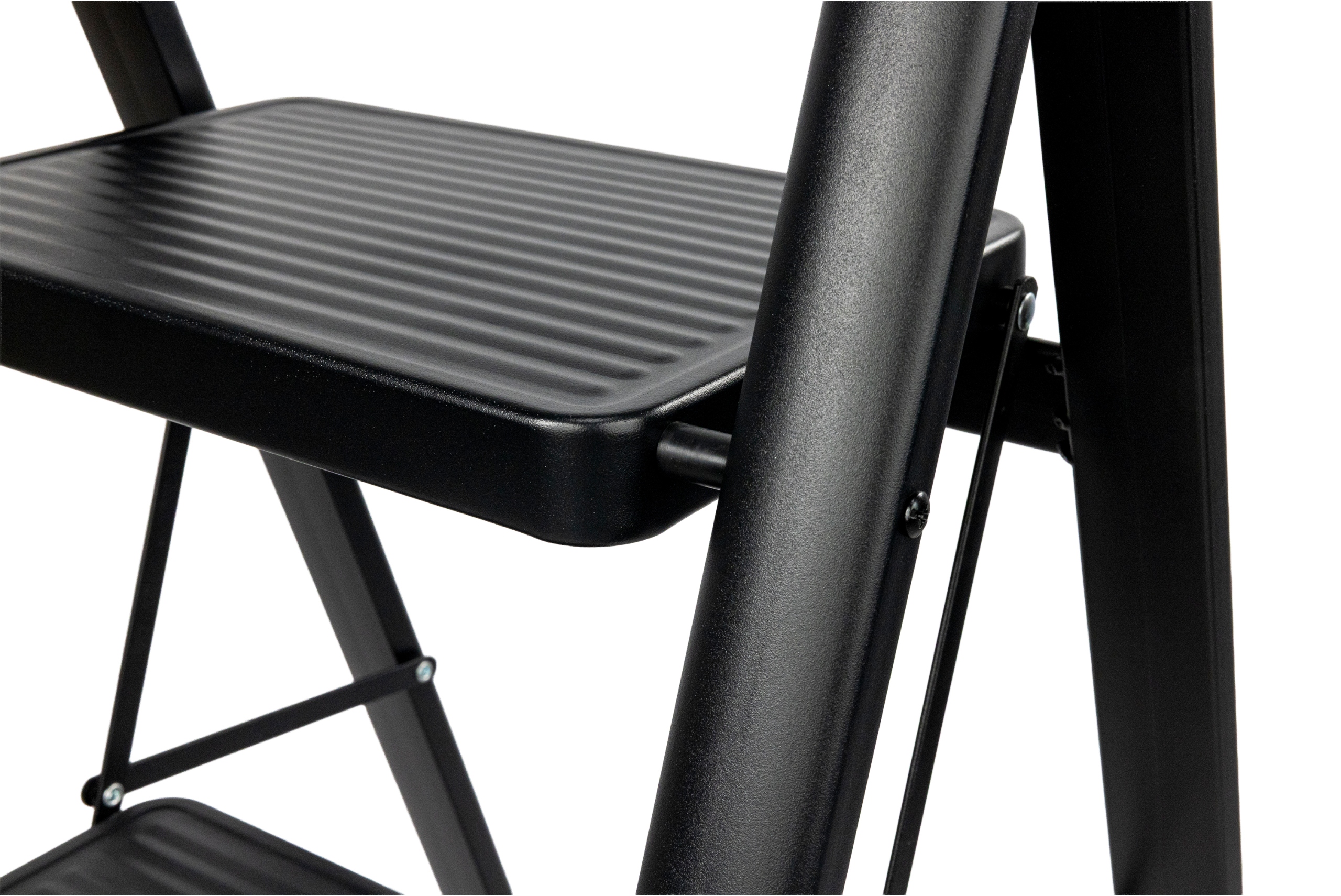 ✔ Сучасний зовнішній вигляд та універсальне використання - Чорні кольори додають елегантність і роблять драбину добре виглядати вдома, в офісі чи майстерні. Стиль, що використовується, поєднує функціональність з естетикою.