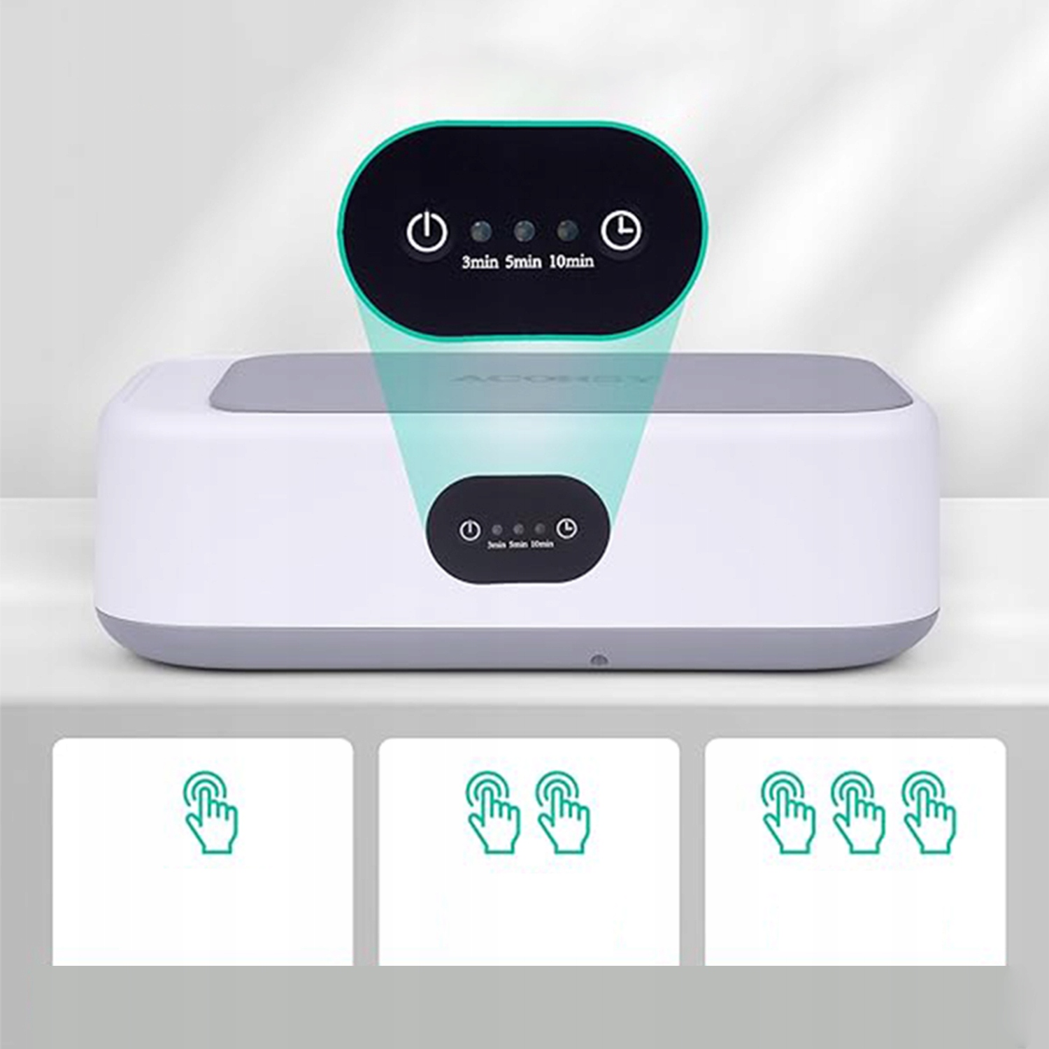 - Ультразвукова шайба запущена однією кнопкою. Є три режими на вибір: 3/5/10 хвилин, ультразвукова шайба.