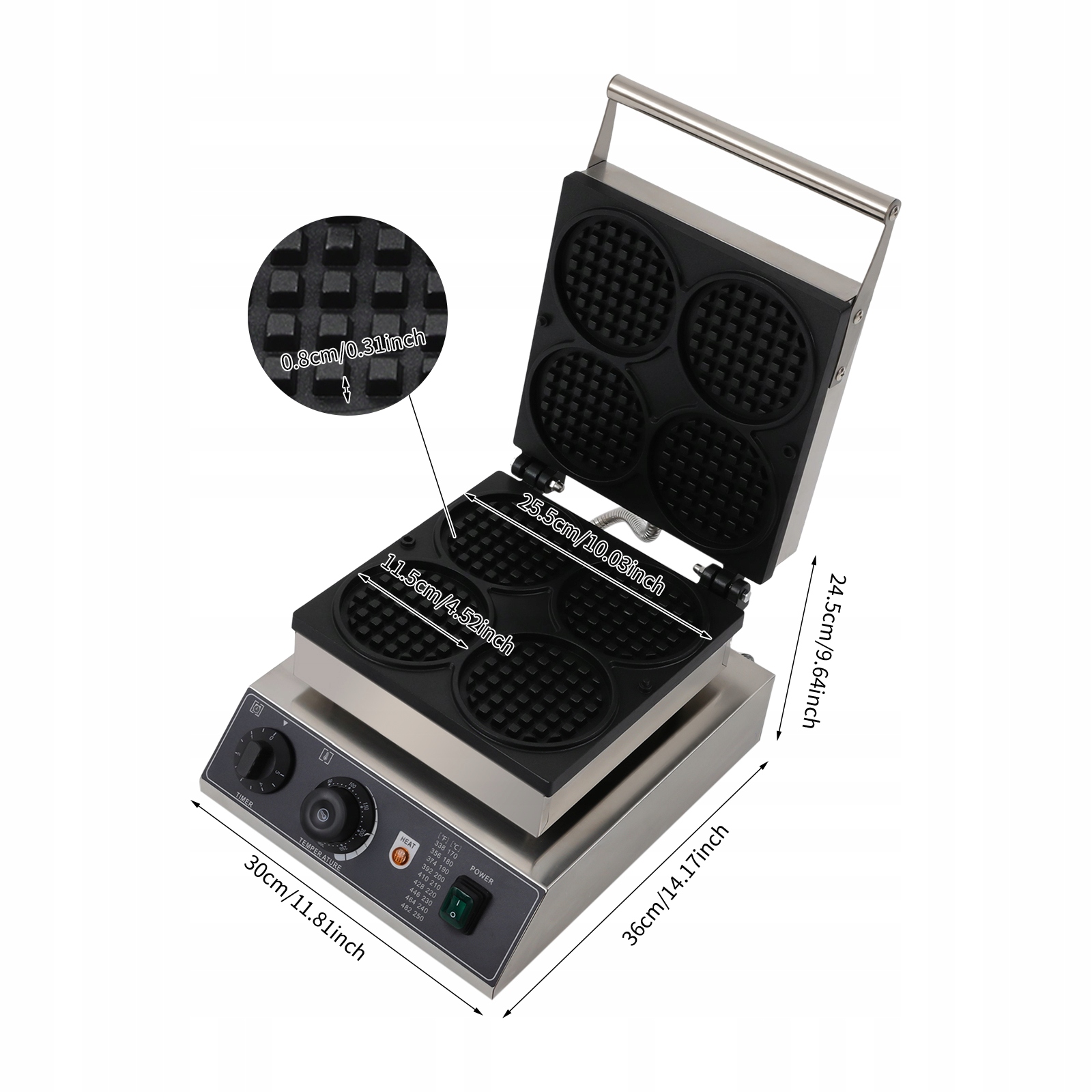 зроблені для останнього: з нержавіючої сталі та алюмінію з високим класом з вишуканим процесом покриття, що не належить, робить цей продукт твердим, стійким до подряпин, стійким до тепла та нелегким для корозії та деформації, забезпечуючи тривалий термін експлуатації. Випічка випічки з 4 відділеннями дозволяє одночасно робити 4 круглі вафлі, що значно підвищує ефективність виробництва. Крім того, сильні трубочки з опаленням потужності та преміум -класу роблять випічку швидше, що дозволяє насолоджуватися смачною їжею без довгого очікування.