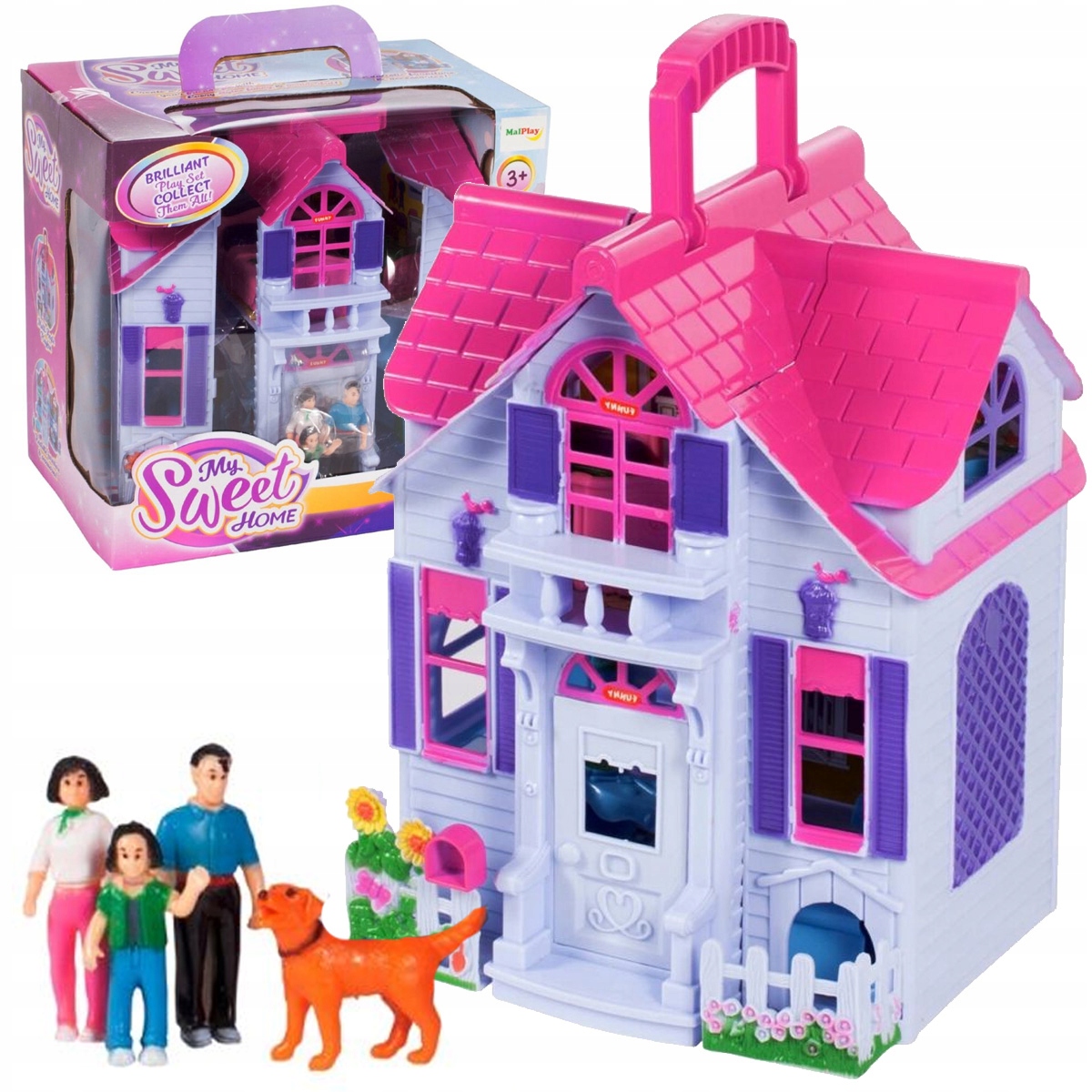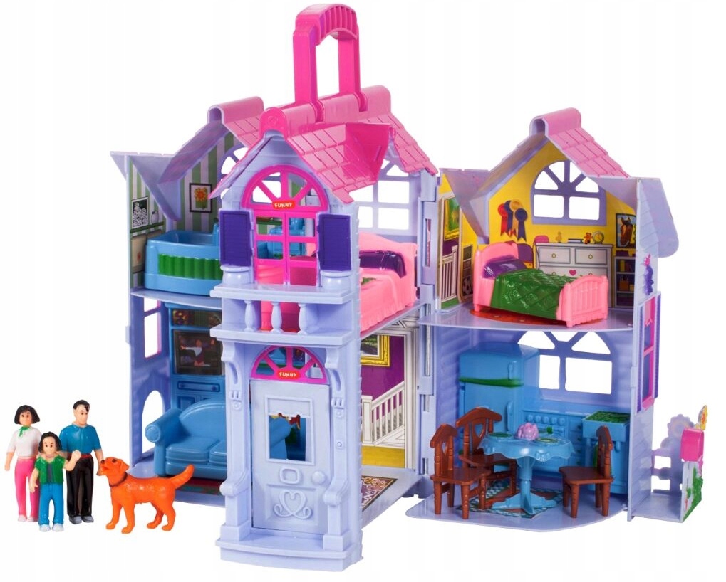 DOMEK DLA LALEK Wiejski Rozkładany Meble Lalki MEBELKI RODZINA PIES ZABAWA
