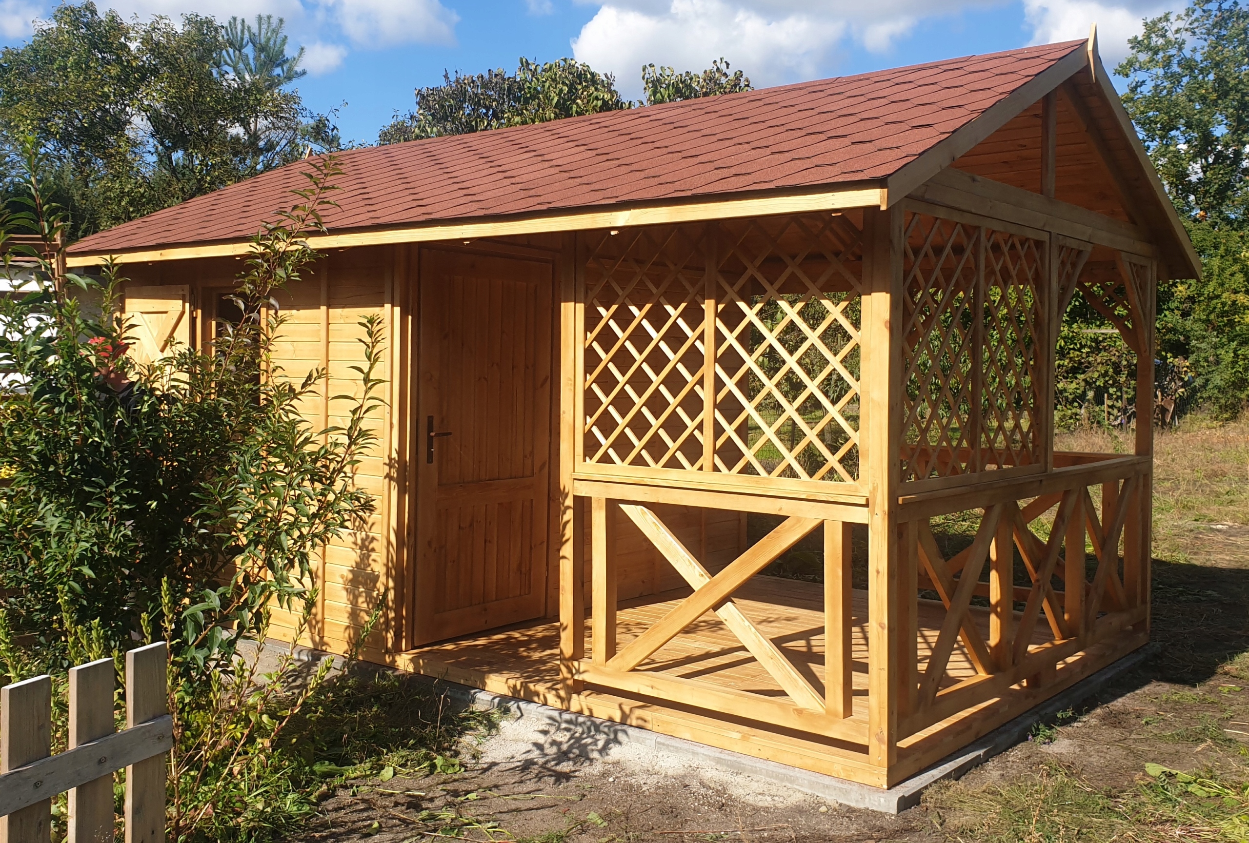 Domek letniskowy ogrodowy altana drewniana altanka na ROD 4x3 m z tarasem
