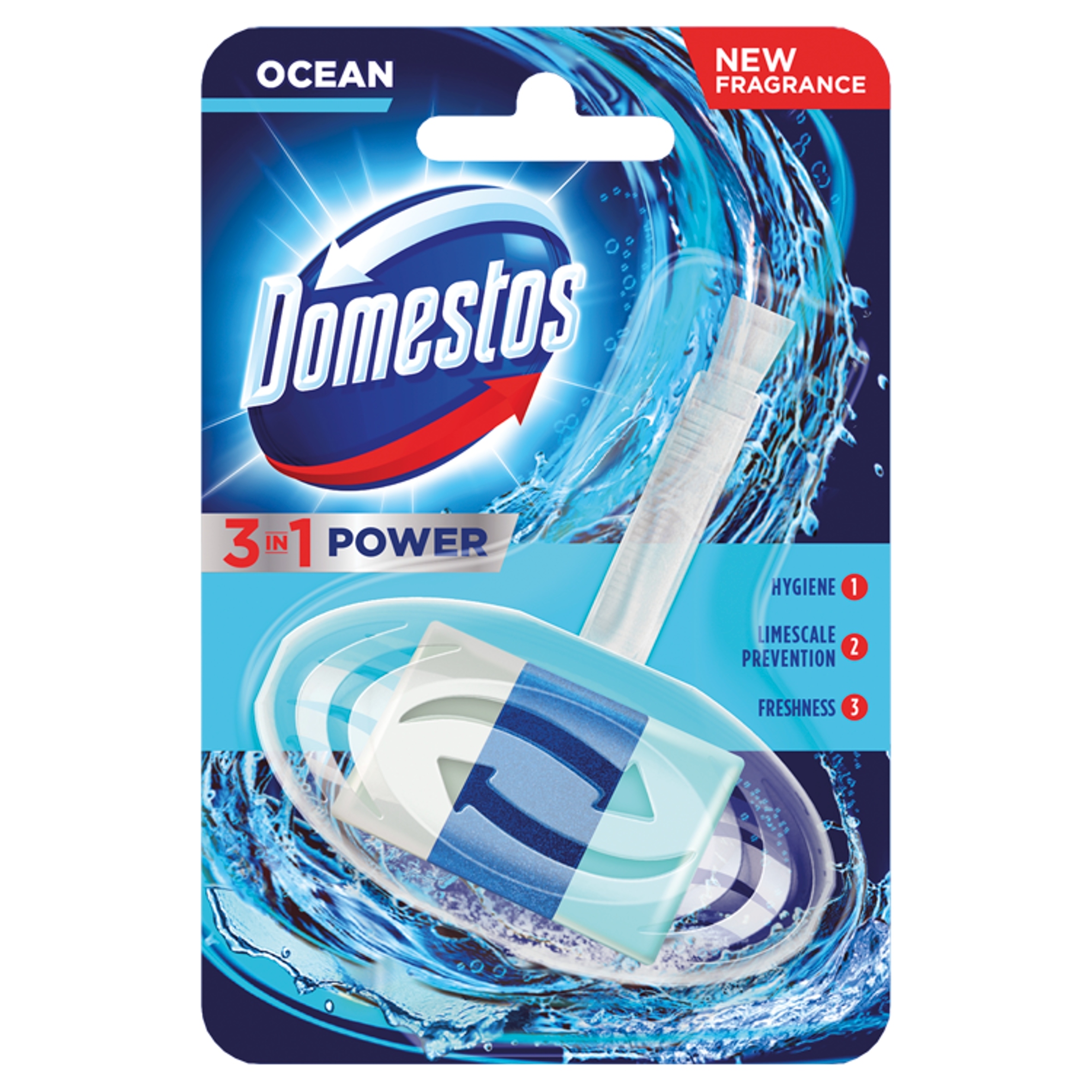 Domestos 3in1 туалетний блок ароматизаторів – це невеликий, але надзвичайно ефективний засіб, який гарантує чистоту та гігієну у вашому туалеті.