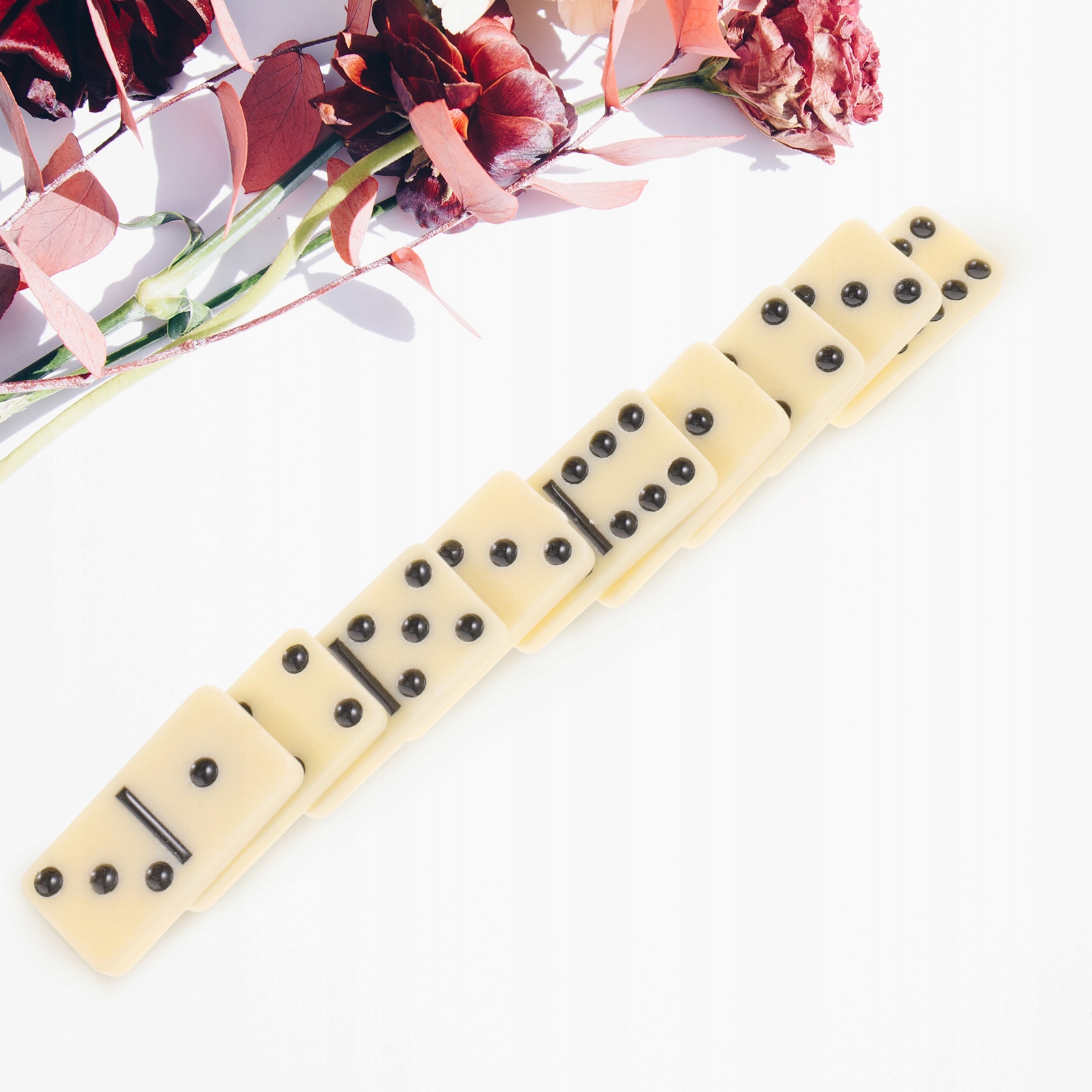 ✅na domino є білими в чорних крапках, що є дуже класичним. Чудовий подарунок і чудово підходить для доміно для дорослих та сім'ї.