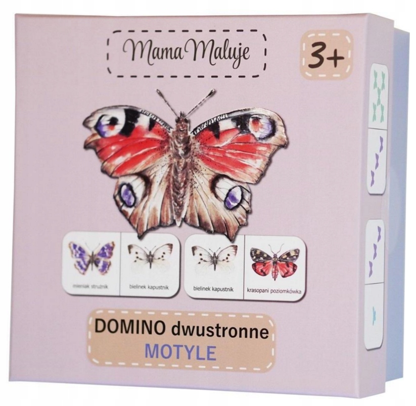 Доміно - це позачасова гра, що з'єднує покоління. Упорядковуючи картки Доміно, ви можете розробити словниковий запас та практикувати навички підрахунку. Гра вчить терпіння та фокусу. Приємні ілюстрації змушують дітей прагнути до цього. Набір включає 28 двосторонніх картонних коробки. З одного боку, є ілюстрації метеликів, а з інших барвистих тіней, що містять від 1 до 6 елементів. Гравці вирішують, в яку сторону картону будуть грати. Гра передбачає відповідність правильних коробок. Людина, яка перша, яка позбулася від усіх коробки, або має менше у відсутності переможців. Доміно упаковується в прекрасну, стильну та довговічну коробку. Завдяки матової фольги, це приємно дотику і дуже естетично. Картонні коробки Domina виготовлені з міцного картону, а їх розмір підходить для маленьких гравців.