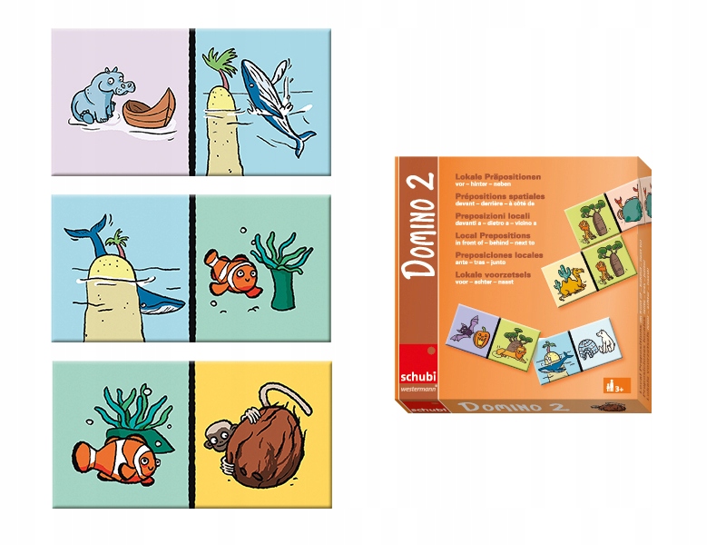Доміно призначений для дітей, які мають труднощі з використанням прийменників. Він може бути використаний при терапії затримки розвитку мови з проблемами синтаксису, а також у ранньому розвитку мови або в класах інтеграції. На відміну від класичного доміно, гра пропонує 3 варіанти, що збільшує рівень складності. , Гіппотам, Гіппотам, Гіппотам, Гіппотам, Гіппотам, Гіппотам Ведмідь