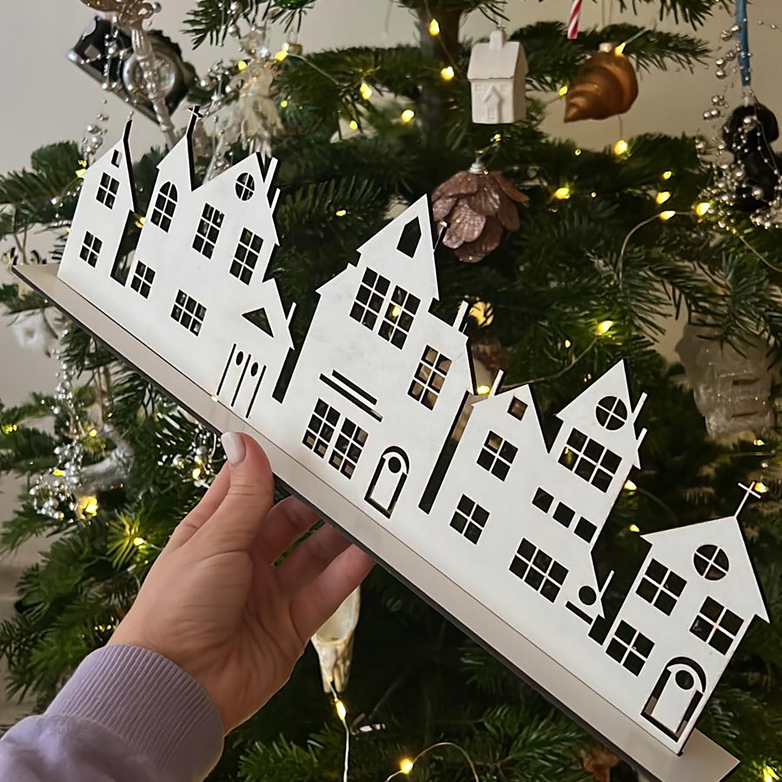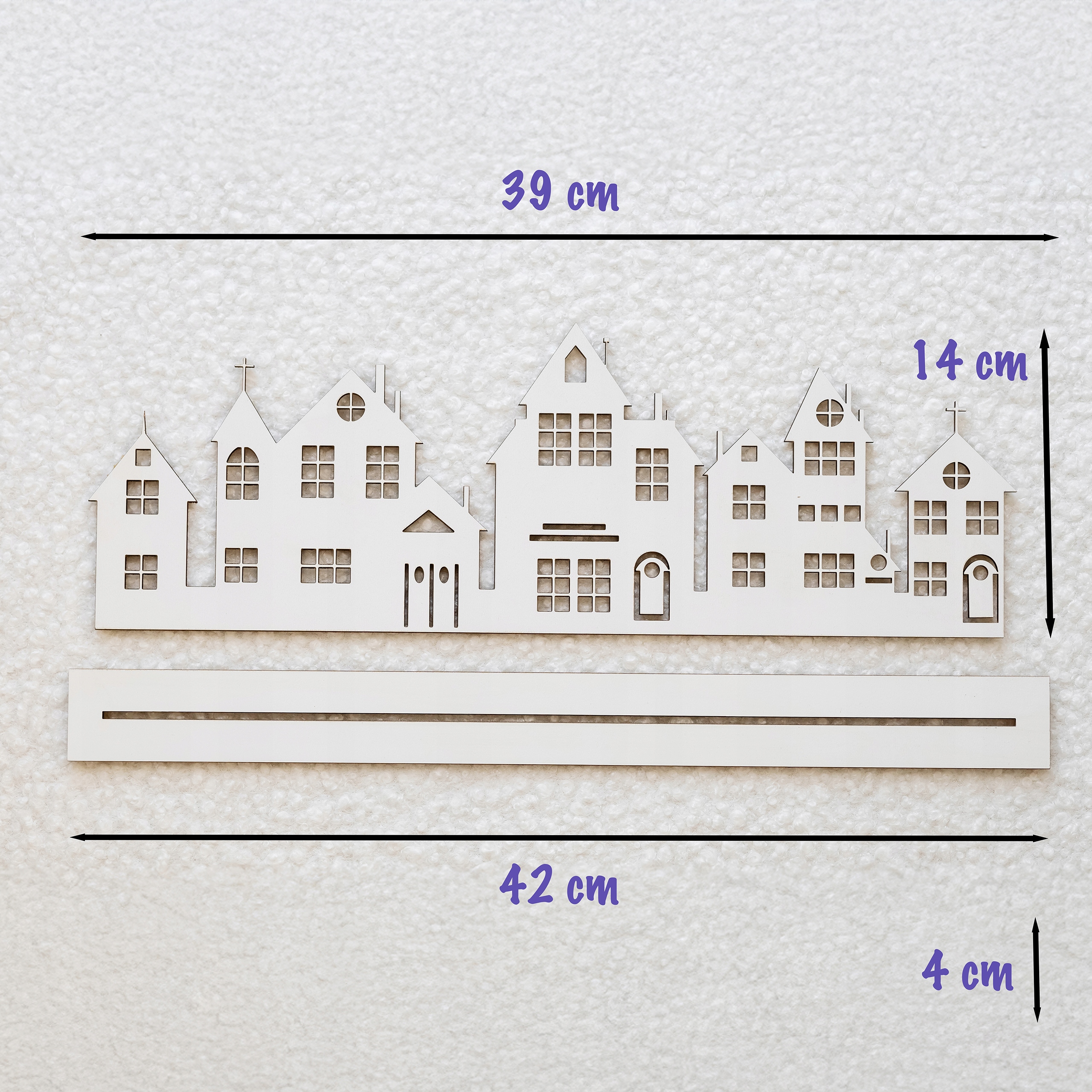 Унікальні будиночки з високоякісного HDF товщиною 3 мм, розміром 42 х 14 см. Ідеально підходить як стильний елемент декору або оригінальний свічник. Завдяки ретельному виконанню будиночки ідеально вписуються в будь-який інтер'єр, додаючи йому затишку.