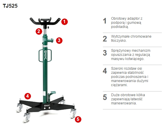 Підйомник для коробки передач, двигуна або вихлопної системи від датської компанії COMPAC, тип: TJ 525.