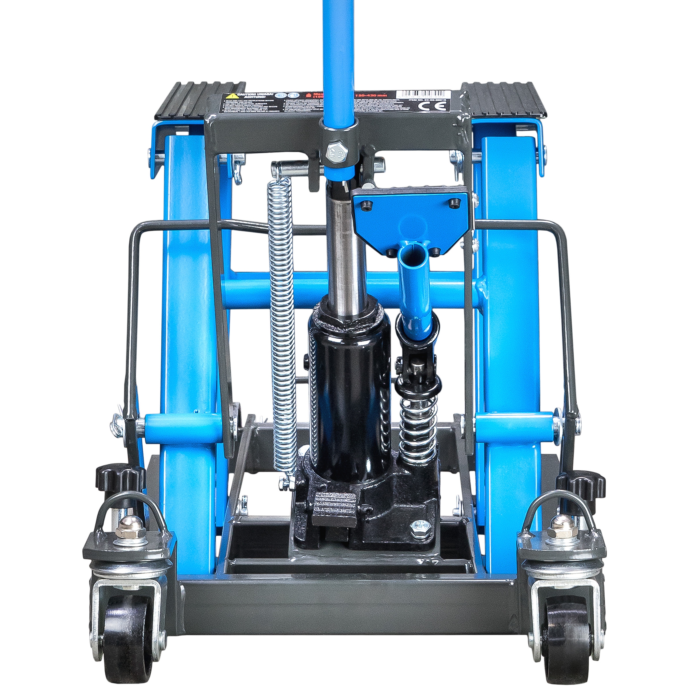 Рама пристрою оснащена сталевими колесами (зокрема двома поворотними колесами ззаду), що полегшує розміщення підйомника під мотоциклом чи квадроциклом. Це також полегшує ергономічна ручка довжиною 60 см.