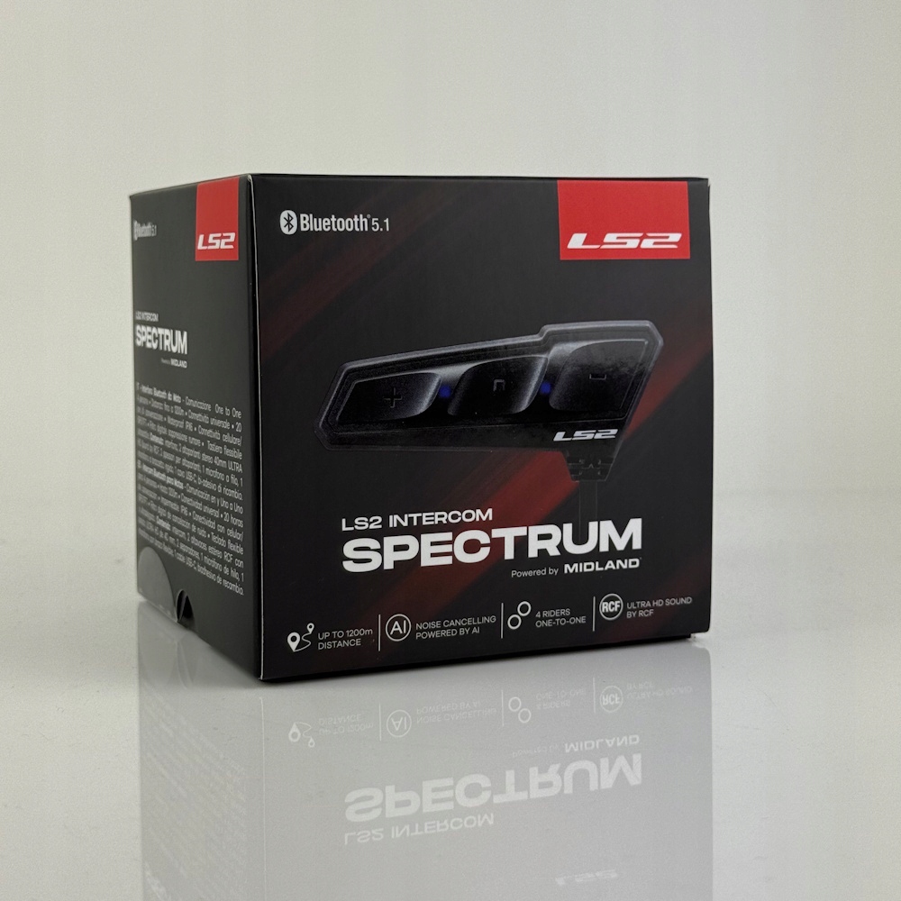 вдосконалена система зв'язку Bluetooth, розроблена у співпраці з Мідлендом, присвяченою шоломам LS2. Він пропонує чудову якість звуку RCF, домофон для чотирьох мотоциклістів та розумне зменшення шуму. Завдяки водонепроникній конструкції та широкій сумісності, спектр LS2 забезпечує надійне з'єднання під час кожної подорожі.
