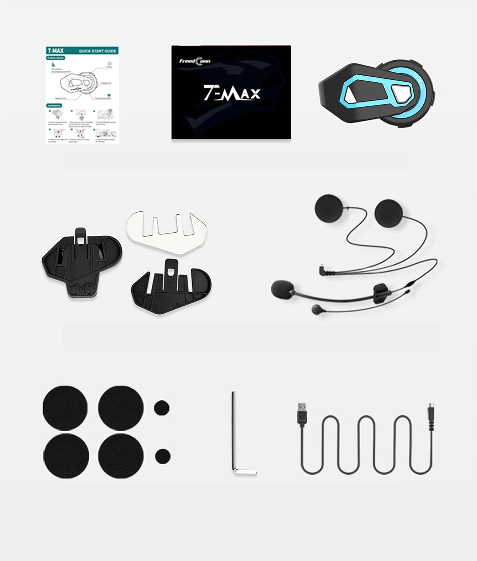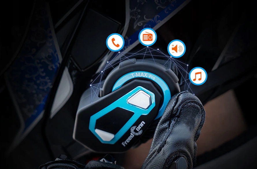 Високоякісний мотоциклетний домофон FreedConn T-MAX V4 PRO, призначений для спілкування з пасажиром або іншим водієм. Зв'язок по Bluetooth дозволяє з'єднати 6 співрозмовників. Ви також можете з’єднати його зі смартфоном або навігаційним пристроєм, щоб зручно телефонувати або отримувати голосові команди. Завдяки використанню технології Bluetooth він ідеально підходить для повнодуплексного зв’язку між водієм і пасажиром, а також між водіями (мотоцикл-мотоцикл). За допомогою технології Bluetooth можна підключити багато зовнішніх пристроїв - мобільний телефон, MP3-плеєр і супутникову навігаційну систему GPS. Сумісність з останніми смартфонами також була збільшена завдяки використанню протоколу Bluetooth 5.0. За даними виробника, робочий діапазон в ідеальних умовах становить до 1000 м.