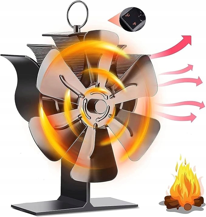 - Автоматична робота: Батареї та електрика не потрібні, пальник на дровах працює автоматично, коли температура поверхні печі досягає 70-110°C залежно від типу каміна. Єдиною рухомою частиною є лопатка, завдяки чому вентилятор дров’яної печі майже безшумний навіть на найвищій швидкості.