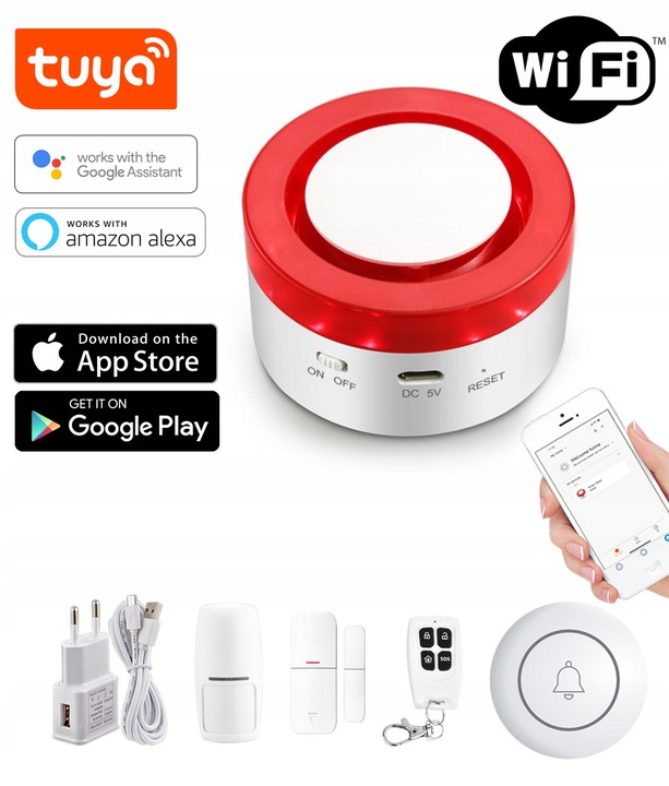 Одна з найкращих WIFI сигналізацій на ринку - звукова та світлова сигналізація - керування через програми TUYA, GOOGLE ASSITANT, AMAZON ALEXA