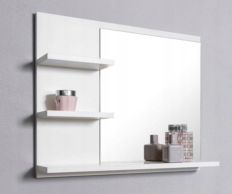 Біле дзеркало з полицями, дзеркало для ванної кімнати, L