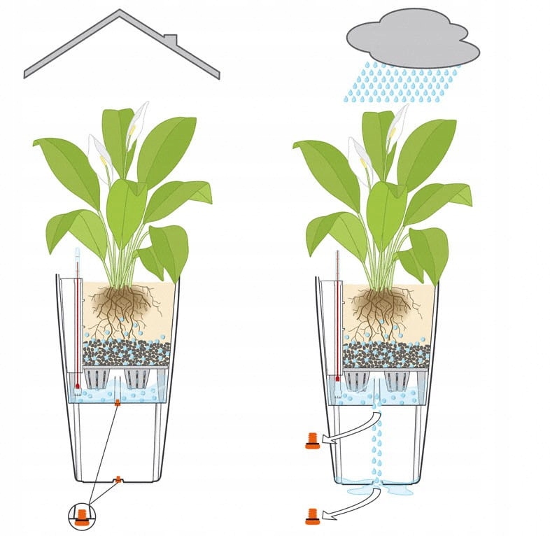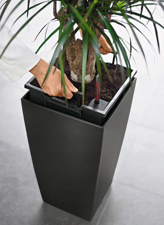 Іригаційна система, інтегрована з горщиком, збирає воду на дні, що дозволяє поливати рослини набагато рідше. Горщики Lechuza дозволяють висаджувати великі рослини, висотою навіть кілька метрів. Горщики можна залишати на вулиці цілий рік, якщо висаджені в них рослини морозостійкі та належним чином захищені від сильних морозів. Рослини у великих горщиках можуть бути мобільними за допомогою непомітних підставок з колесами, які є додатковою пропозицією виробника. При посадці великих стовпчастих горщиків рекомендується додатково навантажувати горщики зсередини, щоб уникнути їх перекидання при сильному і поривчастому вітрі.