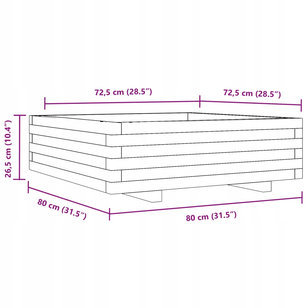 Donica ogrodowa, biała, 80x80x26,5 cm, lite drewno sosnowe