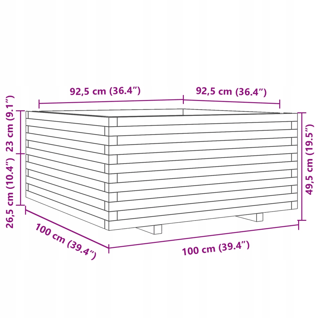 Donica ogrodowa, woskowy brąz, 100x100x49,5 cm, drewno sosnowe
