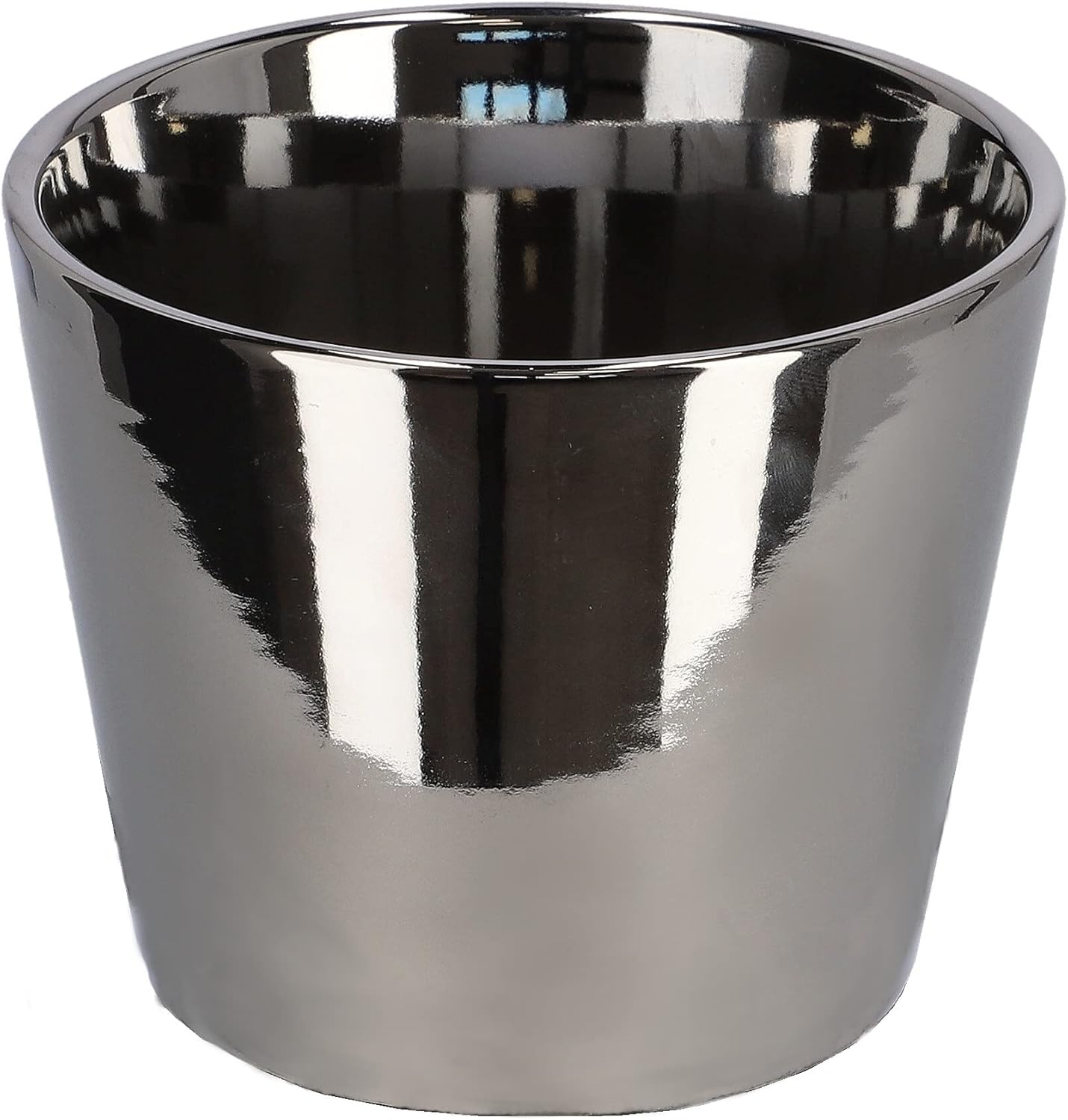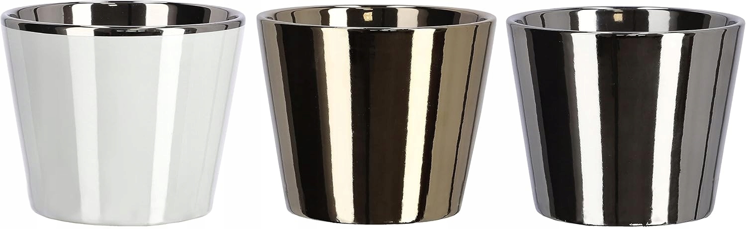 DONICZKA DONICA CERAMICZNA POŁYSK NA KWIATY ROŚLINY OZDOBA OSŁONKA SREBRNA